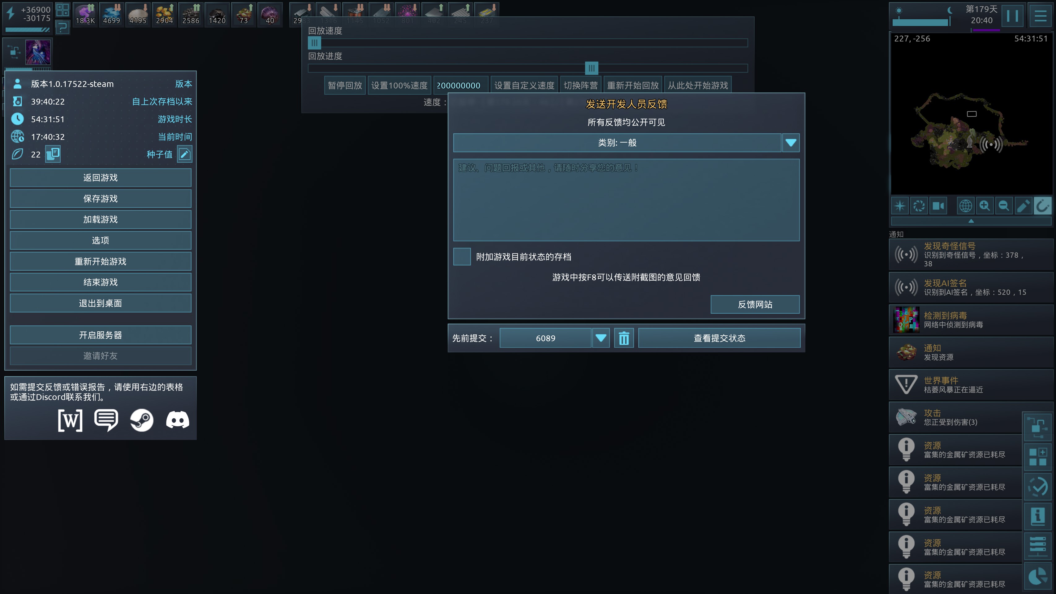| 6142 | 😀 | General | 非常好的游牧模式!完全有和本体游戏一样的潜力!考虑特异性的减少对加固板的需求,一般工人没法加工,速运工人上熔炉有点久了,地图上为什么没有遗迹?然后这个模式完全可以加入仅限母舰使用的拓展sm位置来做大工厂,谢谢你们的好游戏 | 2026-03-08 06:29:49 |