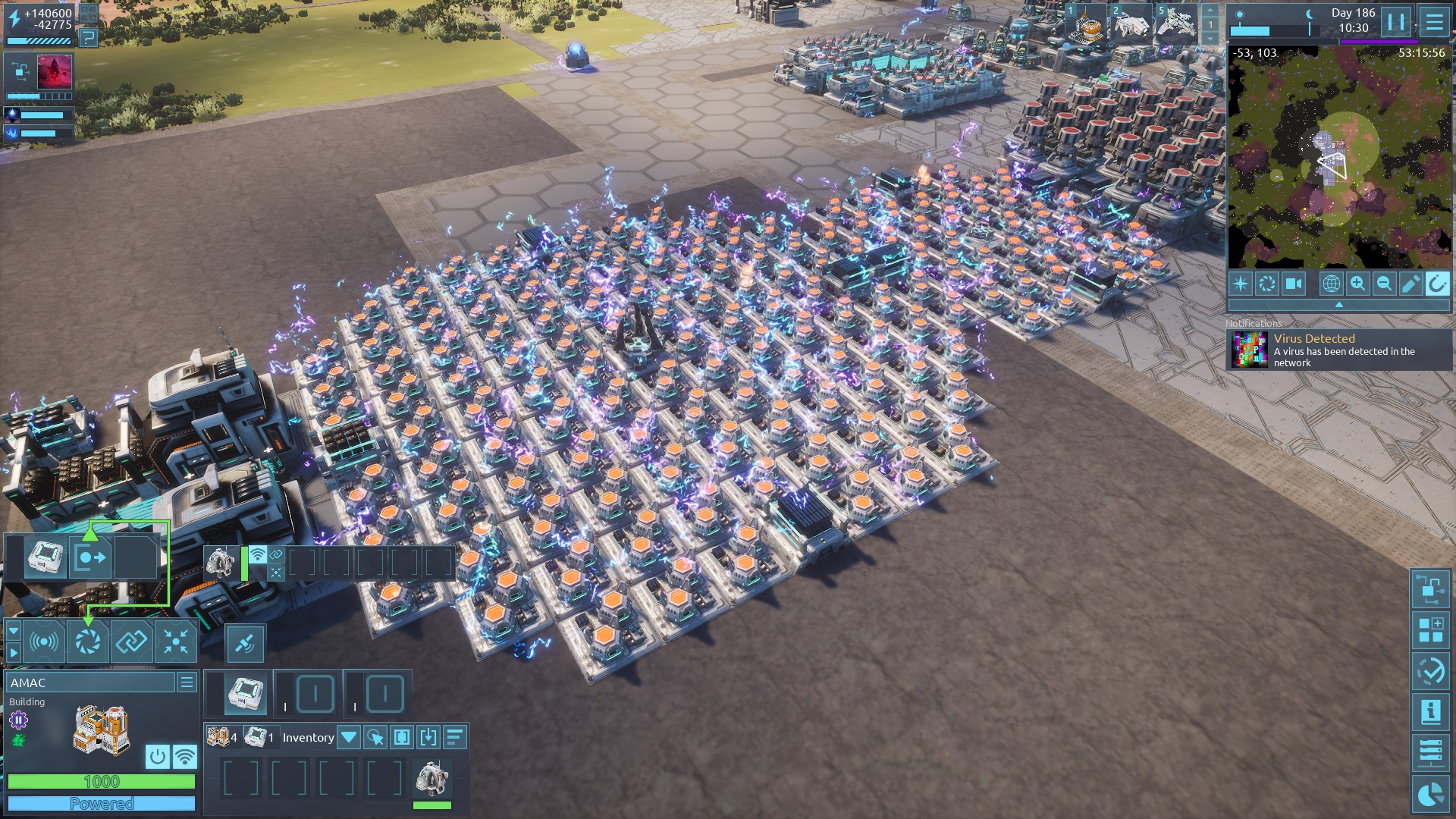 | 6323 | 😟 | Bug | I dont think the recurring request in storage works as intended. See the storage above the foundation factory at the right edge of my plates production. If i do a single request, all is well, the drones fulfil it. If i try and do a recurring request for say 320 ( see my storage above foundation factory) it makes a request for the remaining (at the time of save) 68, which is not fulfilled because it thinks it needs to order 68 items but then decides that the storage already has more than 68. so it appears to be a calculation problem. Took me ages to figure out. I was trying to find the most efficient way to have a chest do infinite requests on a certain item, and this seemed to be it but it does appear bugged | 2026-03-12 21:55:15 | |