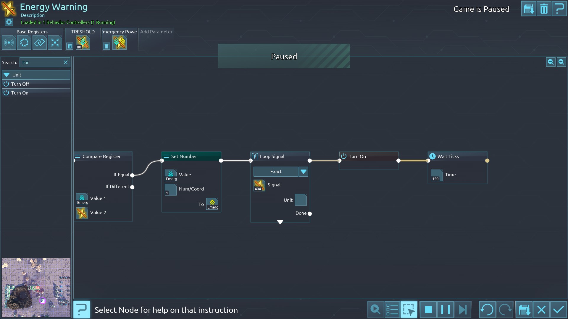 | 6693 | 😟 | Bug | I have a small building near blight magnifiers which mines blight crystal. Its behaviour checks its equipment and writes "shutdown" to it when it reaches 100 resources. I was told in a previous report this would disable weapons but AFAIK nothing will ever shut off a weapon unless you explicitly manually select the weapon type rather than getting what it is via behaviour, which is super annoying as I don't want a behaviour for each and every mining laser or weapon. I've also tried writing a blank/zero value, using just "component" instead of "index", using just "index" instead of "component". Currently it uses both. None have worked. Why is this such a pain? How can I make a behaviour turn off a weapon without specifically setting the type or using a ridiculously long chain of "is equipped" type things? It just seems like all the cleanest solutions do nothing. | 2026-04-04 13:11:26 | |