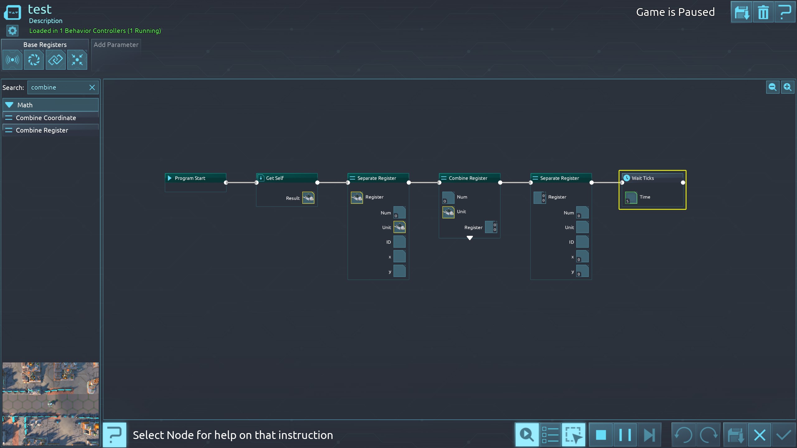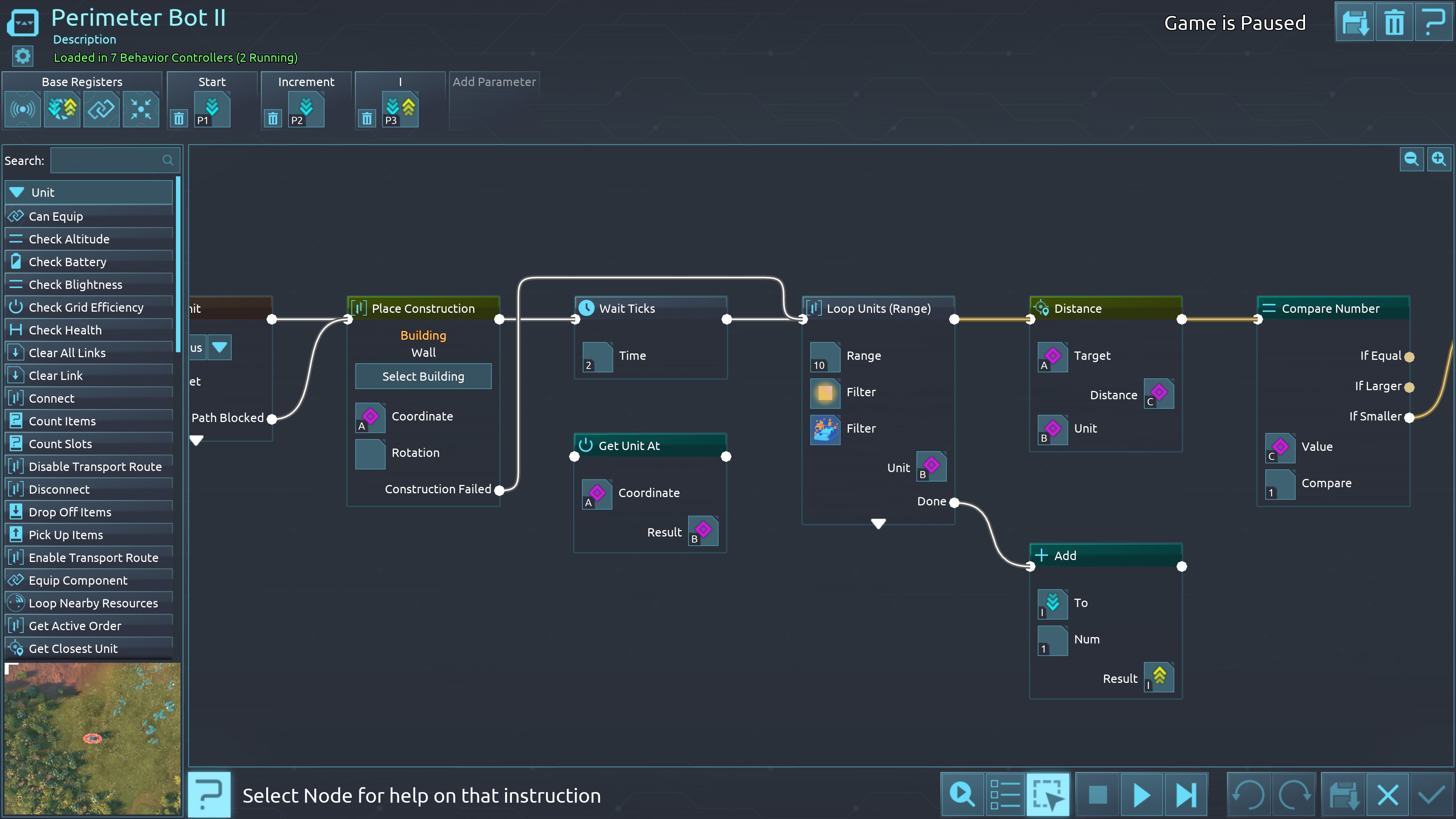 | 6753 | 🙂 | Suggestion | Place construction does not return a reference to the placed construction (if succesful). Using "Get Unit At" at the location of the placed building does not work, because if there's a dropped item, it will return that instead (and that operation does not have filters). I tried looping through nearby construction sites instead and check if any are at the location that I just placed a building, but that does not seem to be reliable either. I do at least need to wait a tick for the construction site to appear to those two instructions at all. In any case, it would be useful if (1) place construction could return a reference to the placed construction site; and if (2) get unit at could be passed a filter. | 2026-04-11 17:56:51 | |