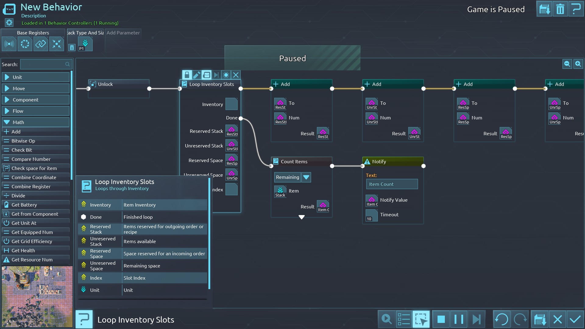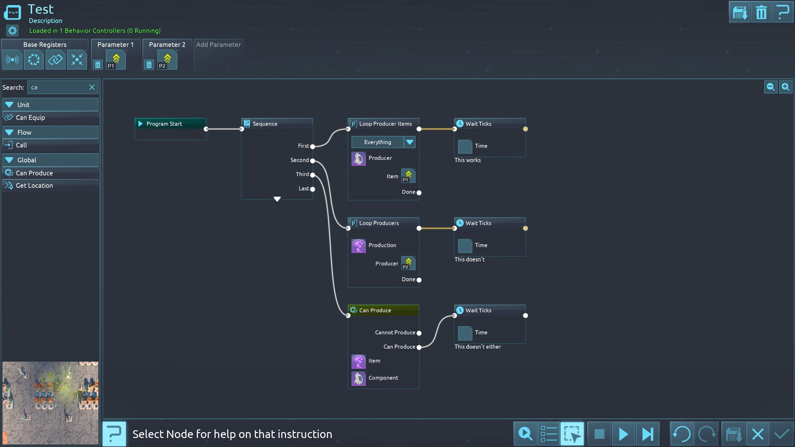 | 6769 | 😟 | Bug | `Loop Units (Range)` unit output is bugged. Observe the pictured behaviour. If I do not use the `Get Location` and `Get Unit At` nodes to refind the unit output by the loop, and instead feed `A` directly into the `Drop Off Items` nodes, they don't work. The `Move Unit` works fine, it's specifically the drop-off that's bugged. If I use the loop output to re-detect the unit, that output `O` works as expected. I have no idea what the issue is, but presumably the `Loop Units (Range)` unit field is outputting some subtly different data-type under the hood in a way that cannot normally be detected by the player. | 2026-04-13 21:09:42 | |