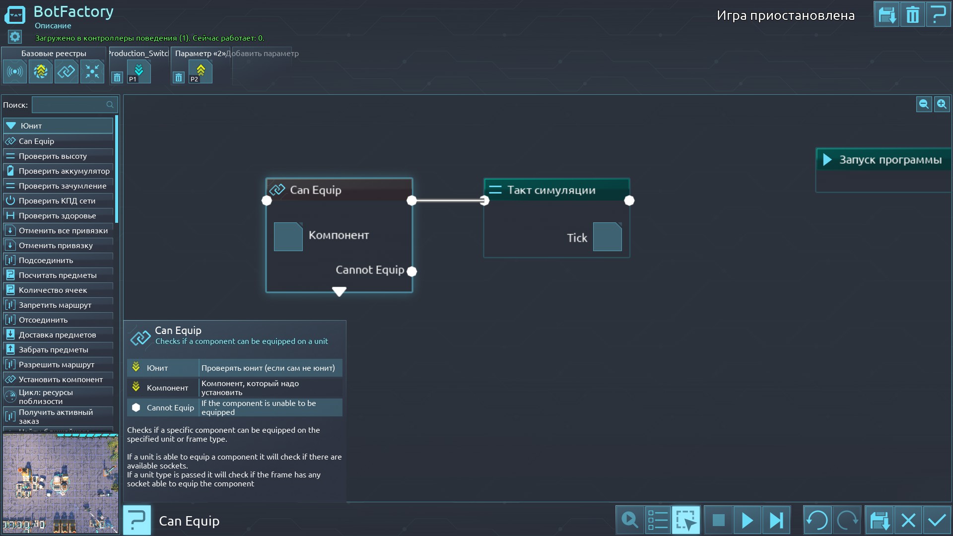 | 6346 | 😀 | General | Thank you for your operational answering and patching ^_^. Love you game with such amasing opportunity to programming behavior. Здесь в двух блоках нет локализации. Can equip и такт симуляции. Thanks for adding new algorithm blocks and behavior features. | 2026-03-13 17:35:47 | |