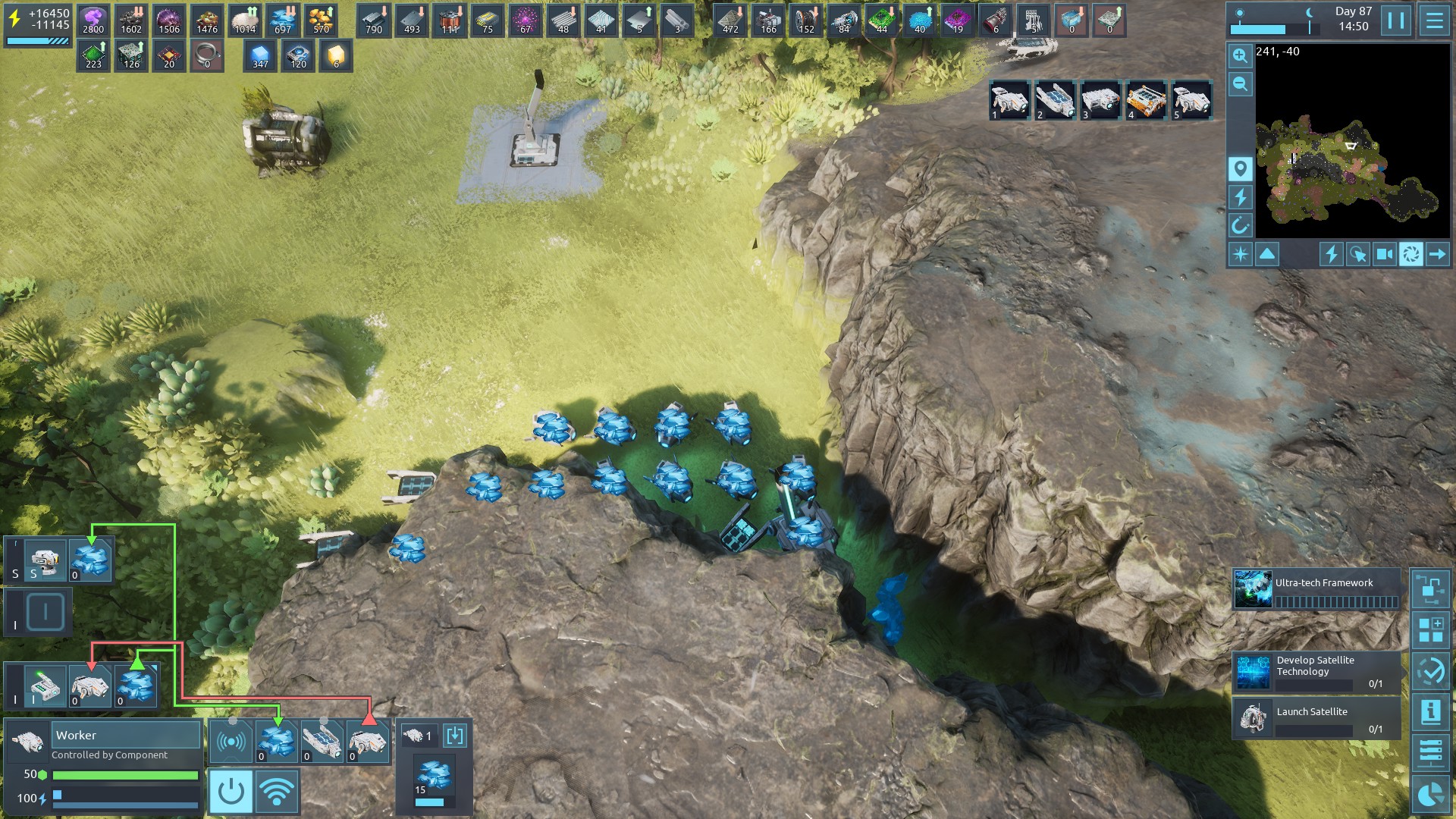 | 1416 | 😟 | General | I've put a lot of time into the game and I have two main issues. The tutorial did not really do a good job of explaining the automation systems. I had to watch some youtube videos to really understand the basics of signals, transport routes, go to, and such. The other issue can seen in this screenshot. 80% or more of the trouble I run into with automation are bots getting in each others way. All of these issues would immediatly be solved if the bots could pass through each other, and would significantly alleviate some of the aggravation I've run into. | 2023-08-24 23:35:33 | |