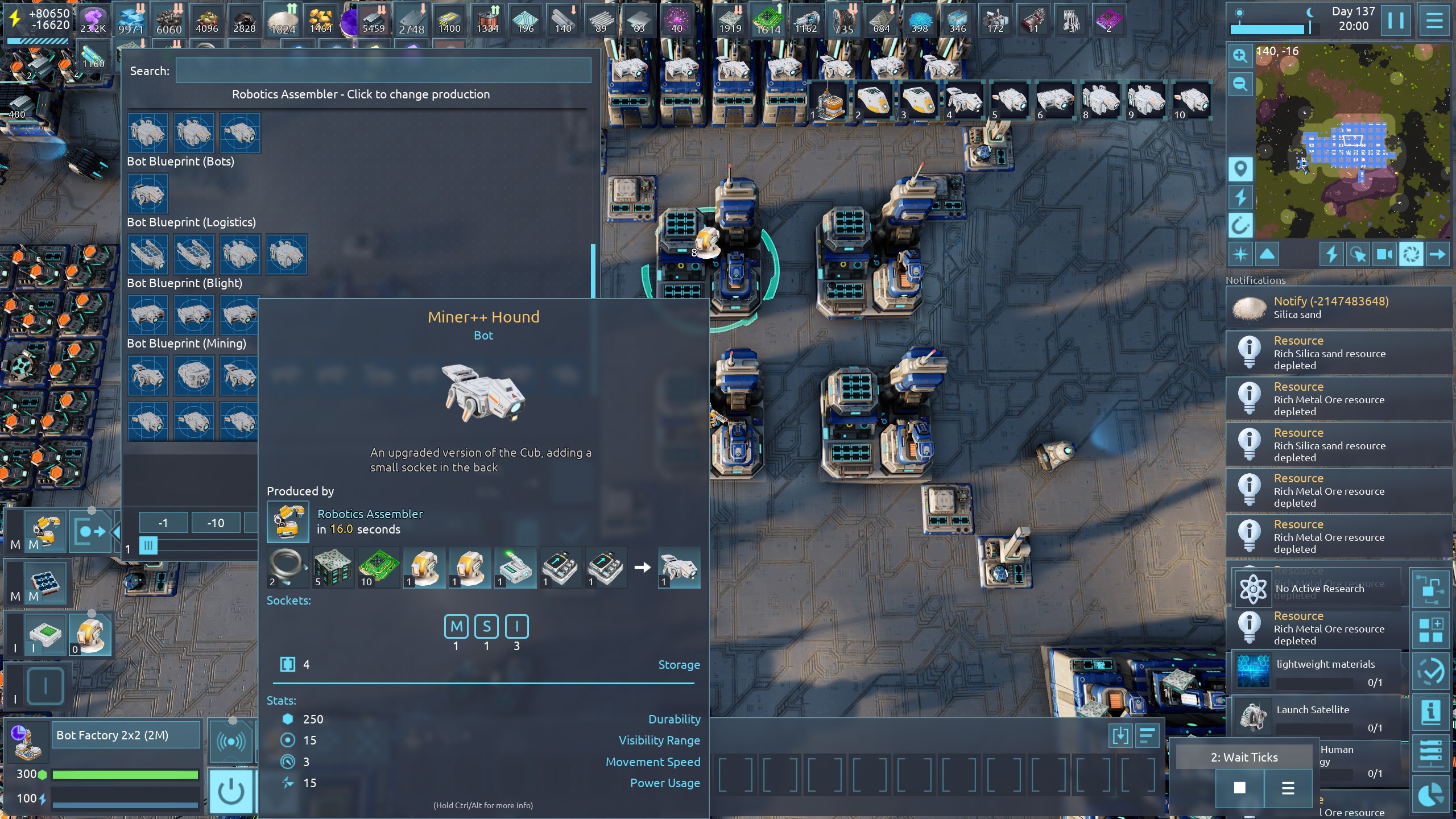 | 1197 | 🙂 | Suggestion | The bots on the left side are transporting just 1 iron ingot each. The blueprints on the right side need around 20 iron ingots to complete but the bots are not using their full inventory size, not even stacking to full size. I think this could be more efficient :-) | 2023-08-22 20:53:29 | |