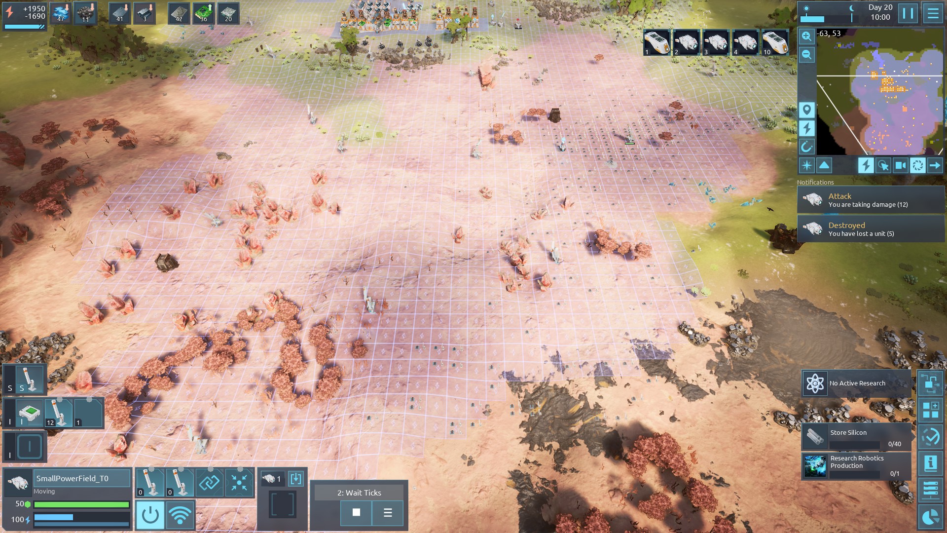 | 942 | 😟 | Suggestion | Bug attacks should not spawn in visible areas. It means there is no time to move turret bots to defend against it. | 2023-08-20 22:52:48 | |