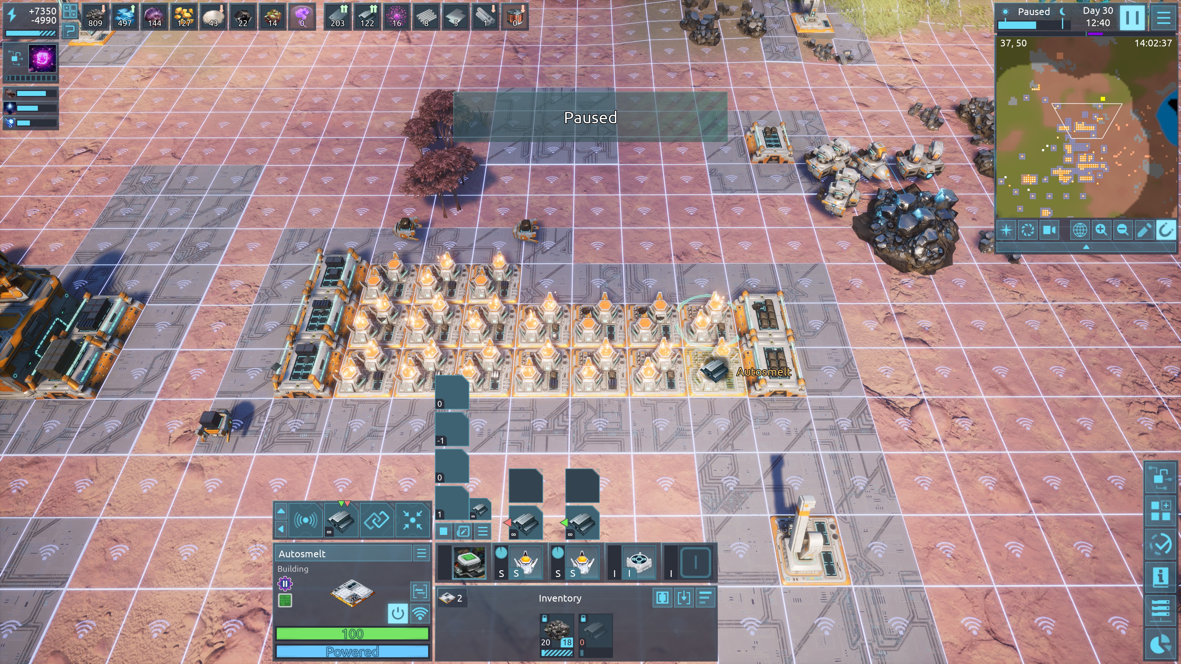| 6270 | 🙂 | Suggestion | Production buildings should be able to reserve less ingredients than they request. For example, a fabricator making metal bars infinitely could reserve one metal ore but request the building to have at least 10 in stock. That way the producer won't have to wait in between ingredient deliveries but the ingredients are still free to be moved around, such as in an automated line of buildings sharing input. | 2026-03-11 12:25:39 | |