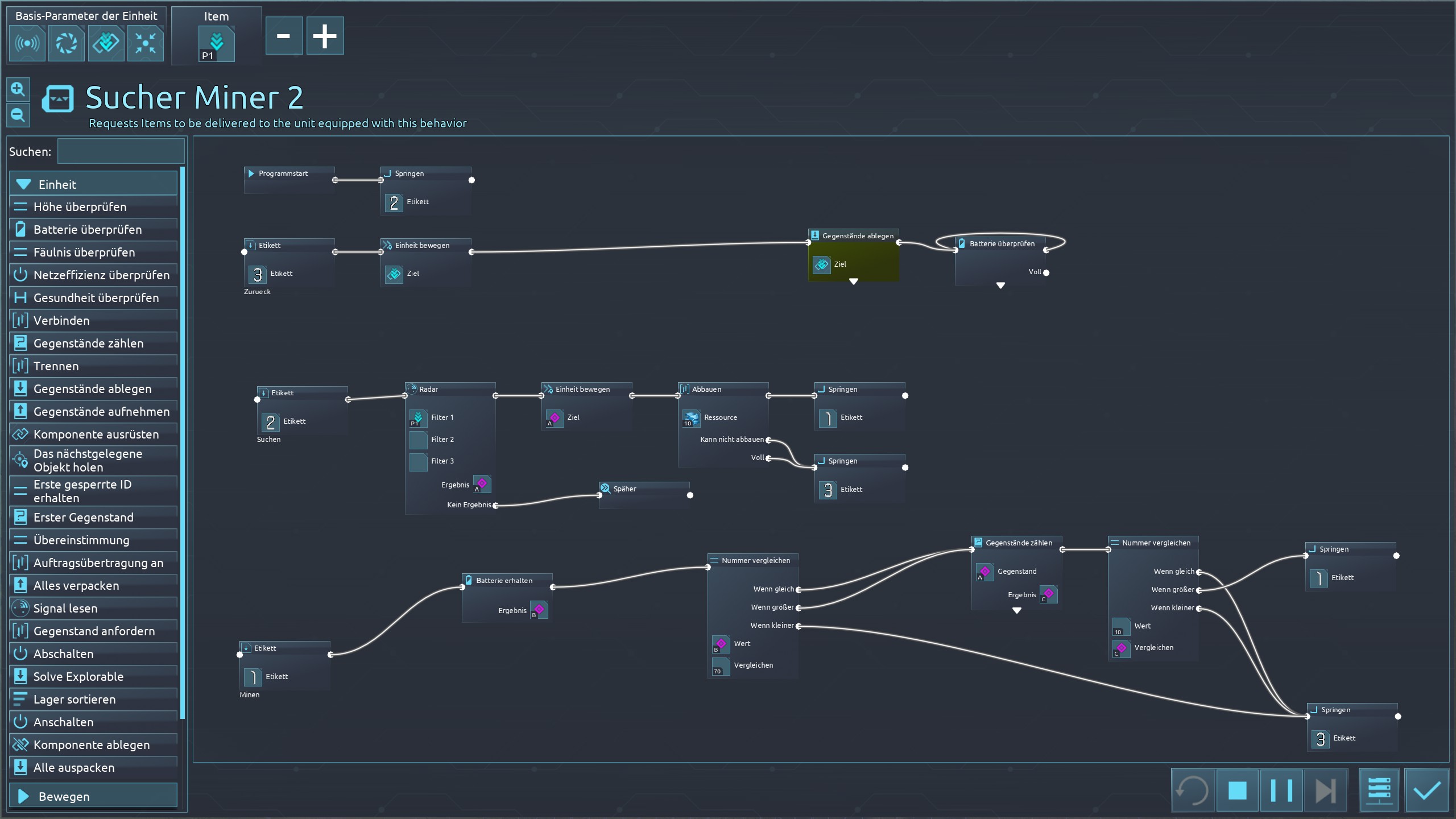 | 597 | 😟 | Suggestion | The mine block in automation should wait until the resource has been fully mined. I've been trying to automate a robot to search and mine for resources on a radar and then go back if the inventory or battery are getting empty however they randomly get stuck "going back home" but instead they're attempting to mine as if the move instruction has been skipped so they simply wait for their battery to be recharged while they aren't even in a powered area. | 2023-08-19 00:58:53 | |