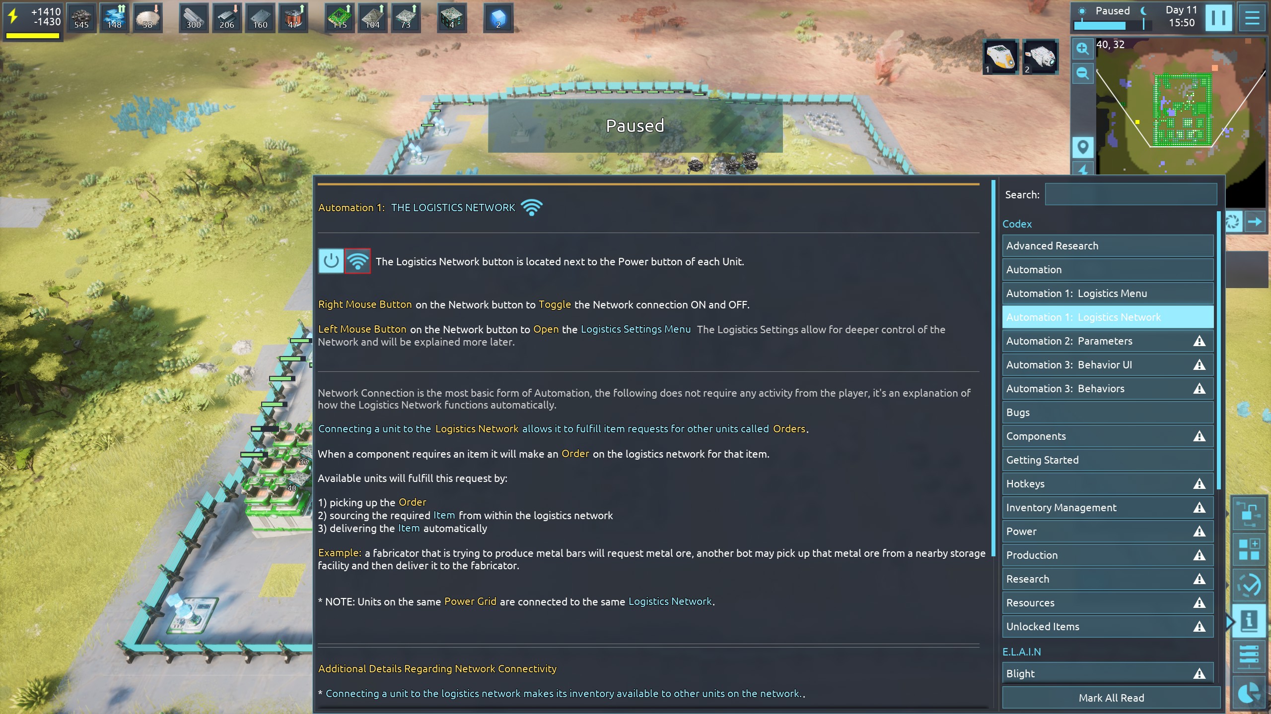 | 528 | 😟 | Bug | In the Logistics Network section of the Codex (see screenshot), the instructions in the first section are backwards. It says right click toggles and left click opens the options, but in fact, left click toggles and right click opens the menu. | 2023-08-18 15:41:19 | |