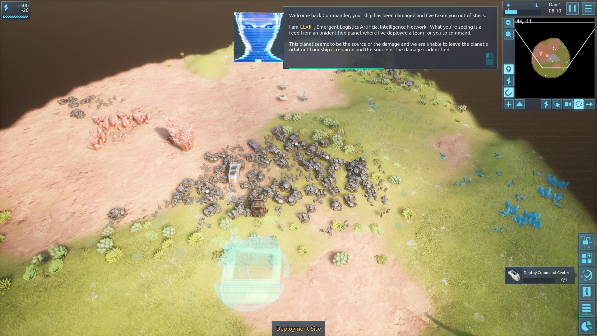 | 490 | 😟 | Bug | Started new game, deployed base and mined 60 crystal and produced 80 metal bars, both bars show full in the objectives screen. But I don't have a next objective, and no ability to build anything other than the starting objects. Also, I cannot research any techs. | 2023-08-18 09:11:59 | |