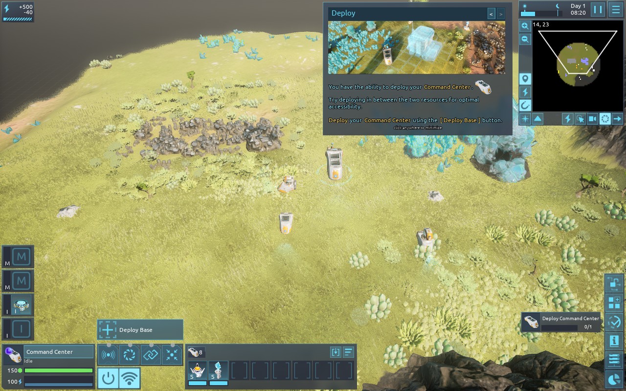 | 479 | 😀 | Bug | At the very begining of the game, command center has spawned surrounder by metal ore. I can't deploy it where it stands (due to lack of the space), neither I can move from where it stands. | 2023-08-18 07:14:40 | |