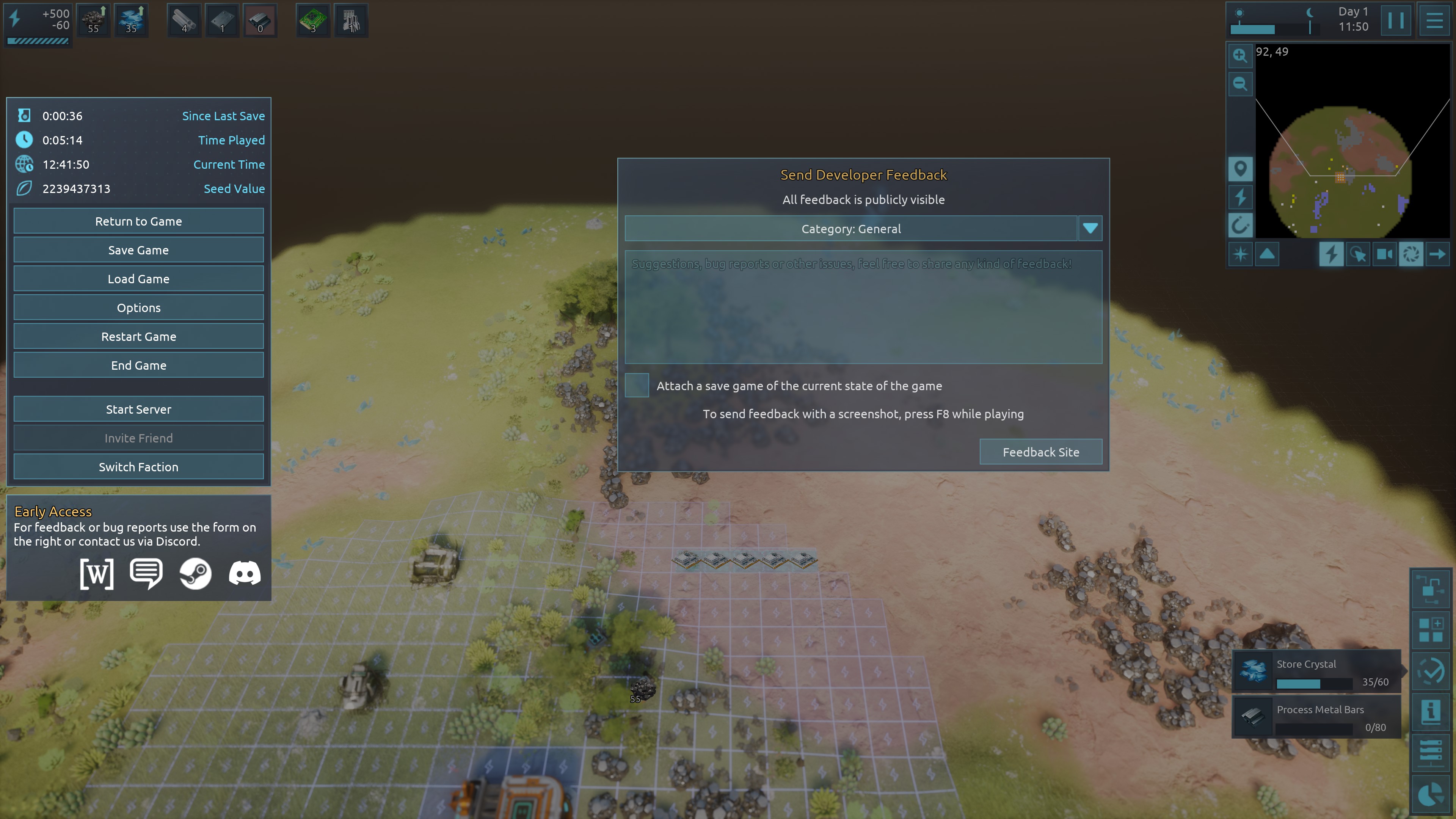 | 517 | 😀 | General | Would like it if the hostile creatures spread and the bug holes kept multiplying and we get more and more bug/nests as the map goes on, similar to factorio. Would give me more of a sense of urgancy to build something. | 2023-08-18 13:25:17 | |