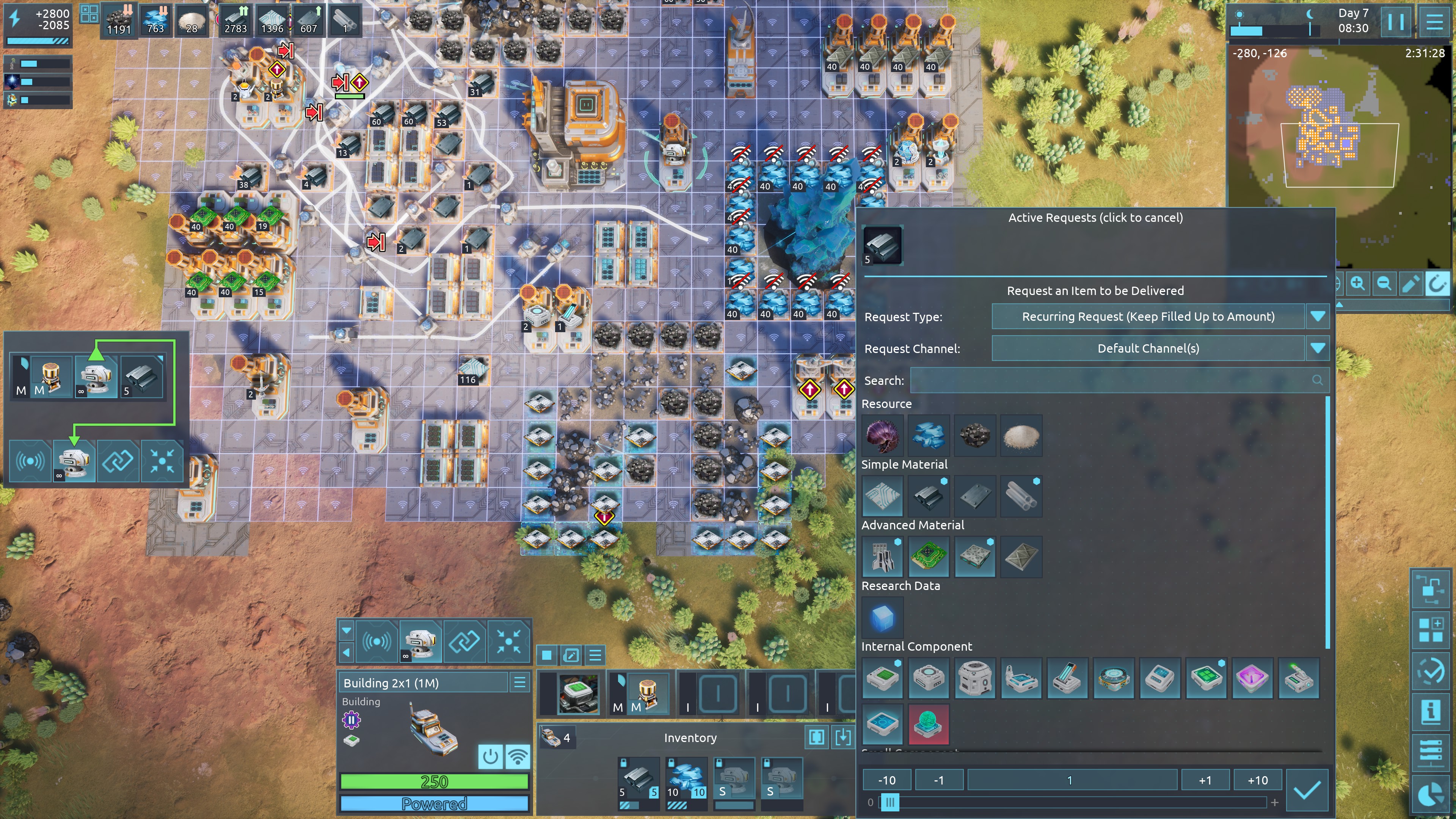 | 5758 | 😟 | Bug | When dragging a stack of items (silica sand) from a scout to a storage building, this was apparently put out to the logistisc network as an order rather than the scout itself moving the two tiles by itself. But logistics were off on the scout to begin with, exactly to prevent such situations. When logistics are off, I don't expect orders to go via the logistics network. The involved parties will have to deal with it themselves. | 2025-11-08 17:03:22 | |