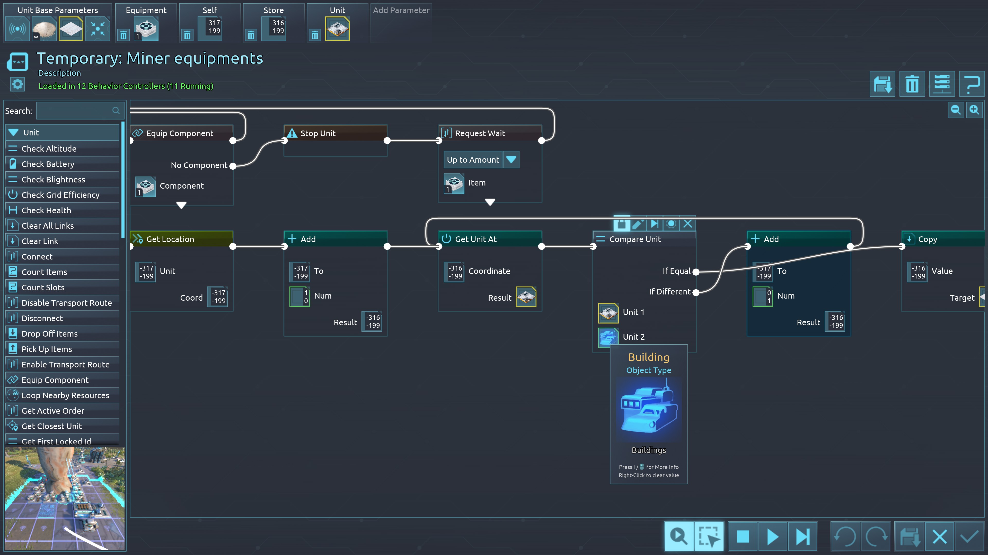 | 5763 | 😟 | Bug | Bottom right, the buildings are exact copy paste, yet they see themselfs as different? Sorry but what kind if the compare can't concude that the same buildings are the same and i need to ask to make it very very clear hat the "if equal" means. Because i assume equal does not stand for same, identical, and i honestly do not know what am i supposed to even use just to QUICKLY and easily, check 2 units, even if they are structures. Is it impossible to request a drop box where "check if same type" (this includes building frame), check against wildcard (a radar using an information filter can find the unit? it's then a valid, it can't fit it? it's not same), same grid (yes, no need for separate label for everything! and this MEANS we can just copy via CTRL and just quickly change the drop box VS constantly filling in parameters), and so on because it is extremly frustrating to try and build a program only to realise that it's not working because of "incorrect" label was used due to terms. | 2025-11-09 15:47:16 | |