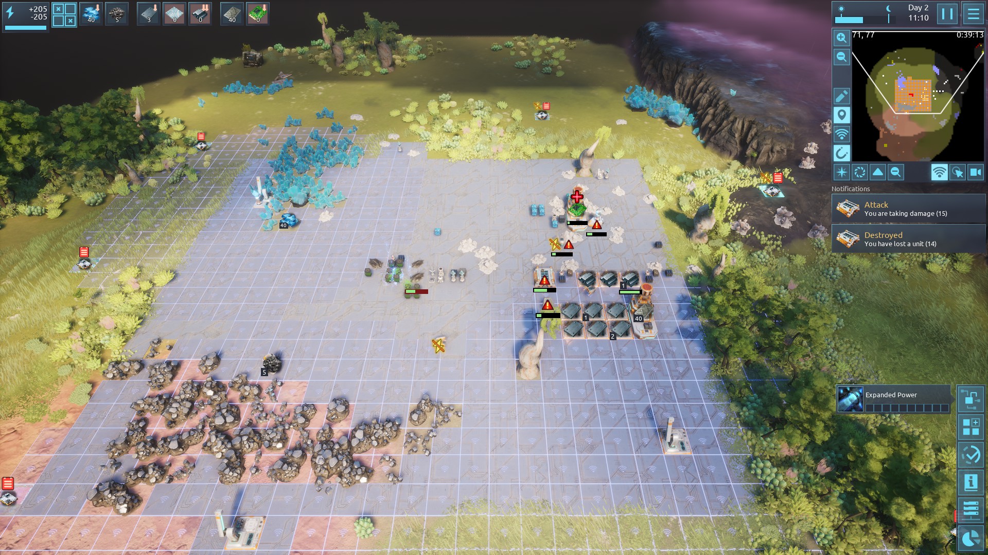 | 4873 | 🙂 | General | Hey there, love the game! Spent quite a bit of time with it now, and thought I could provide a few useful suggestions: 1. The visual language of the components could use some disambiguation. Many of the components look very simular to other components of different purpose. For example, Crystal Power and Small Turrets, Miners and Weapons. Pulse weapons and Power Cells. Colour coding them to their types is probably the easiest solution, but I think adjusting the shape language would be better. For example, weapons could be given barrel shapes, mining equipment could be given a more tactile shapes like claws or drills, and power cells could be given the crystaline shapes. 2. The behavior programming is by far the game's most destinguished feature. It's excellent and what has me hooked. It's a shame to make players wait to unlock the behavior controllers to discover it. I think the controllers should be built into every unit and structure and that supplimentary components could be put into the research tiers. Examples, memory modules for storing arrays, communication modules for transmiting multiple registers at once to any units listening out for the transmiter, behavior loaders for swapping behaviors, ect. A few of those example have mods already. 3. Here's a quick list of some instructions that I'd like to see: Arrays, loops, for and not functions please. Additional inputs to any instructions that assume self to instead take another unit. Information types that can better map the terrain, specificaly a cliff type that I could check for before telling a unit to move to a location. | 2024-11-15 22:15:48 | |