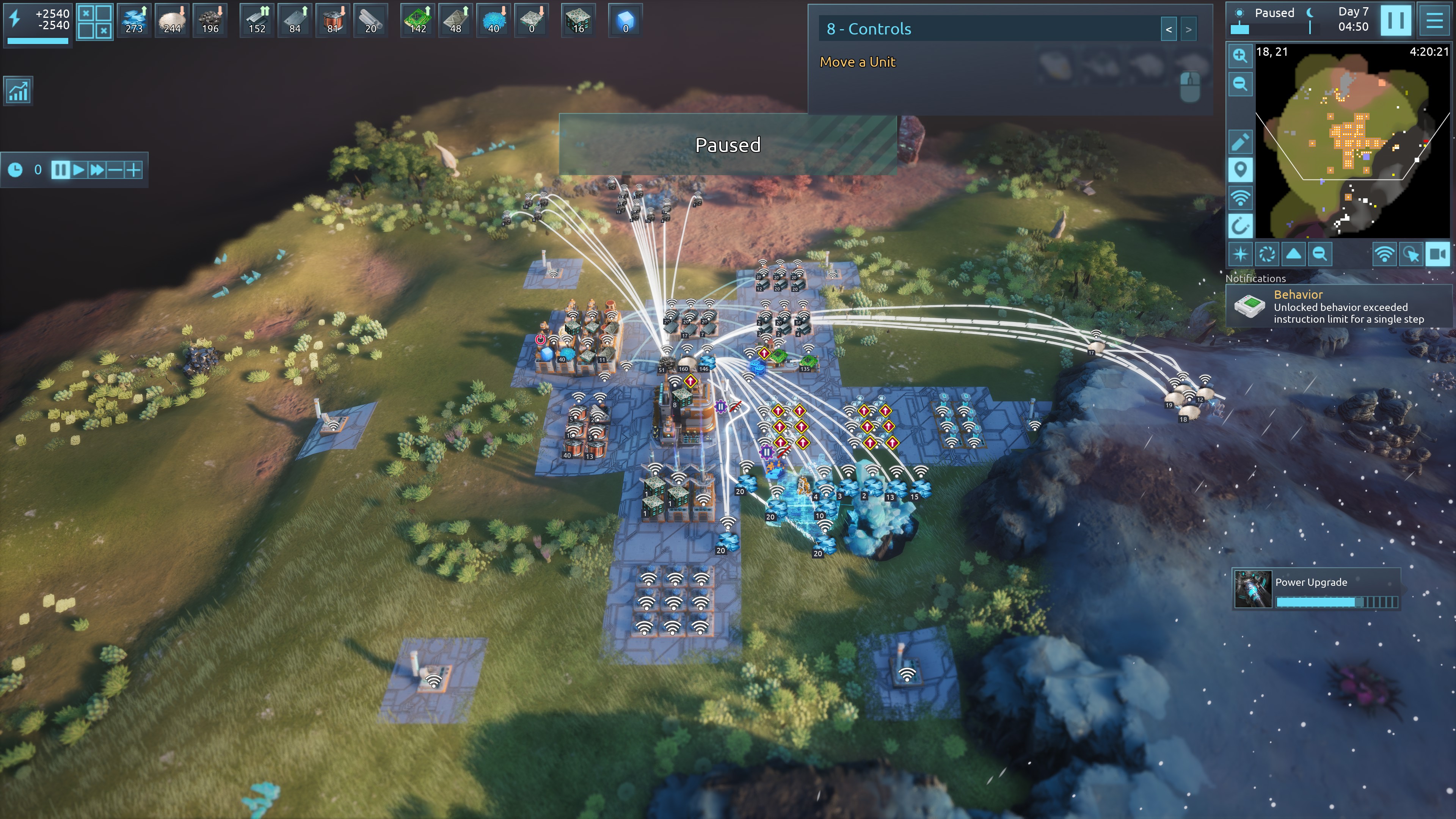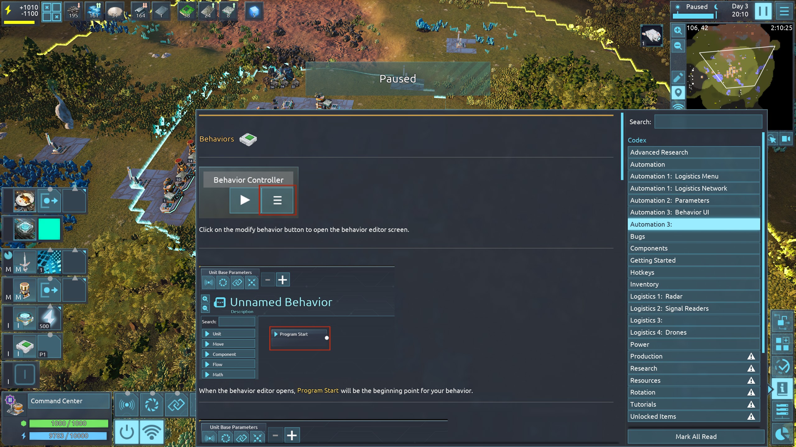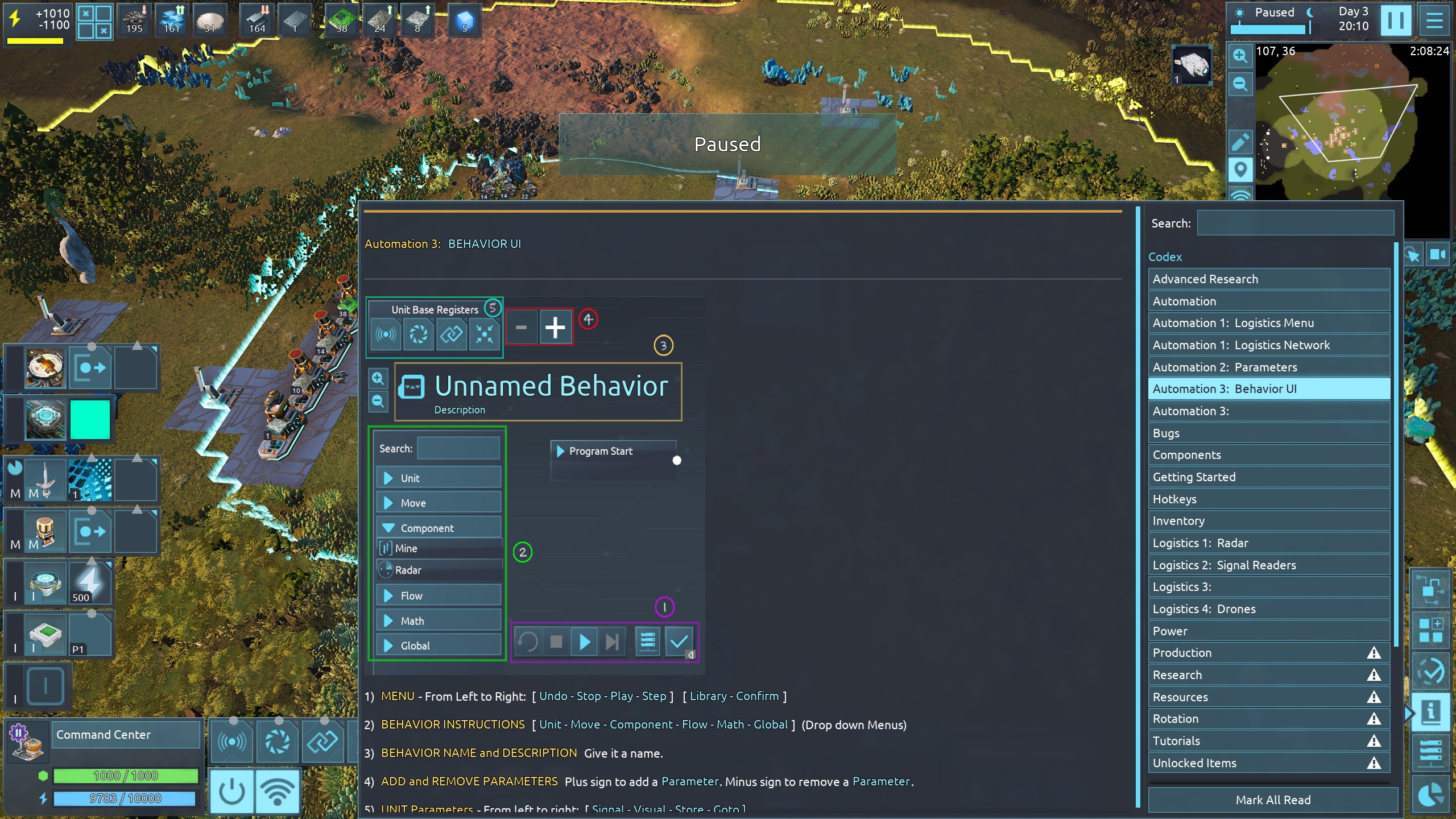 | 4751 | 😠 | Suggestion | I wish there was a proper scripting language to do my scripts in, the visual editor is so annoying to use. At -62,83 there is a cub-bot that I wanted to program to: Patrol between to points And heal any damaged units that it finds. For some reason in the behaviour, when getting self and separating the registers, the x and y values are "REGISTER" instead of (my expectation) its respective coordinates. This is either a bug or a result of the very poor understandability of that code block. Also, look at this abomination I had to come up with to do the tasks described above. This is by no means any more intuitive than a written script. | 2024-09-30 17:30:40 | |