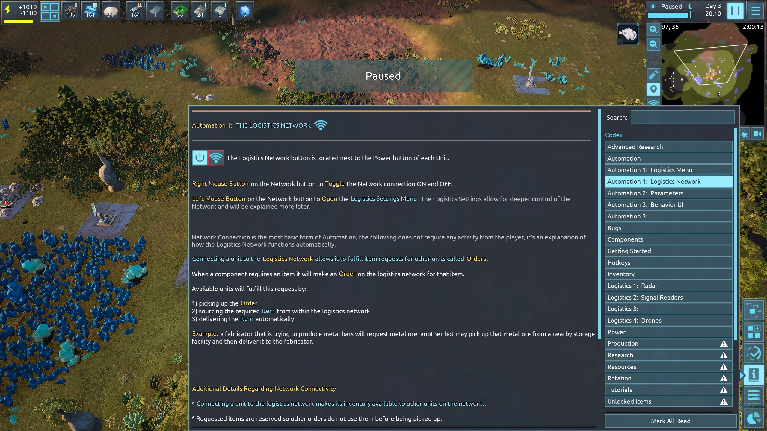 | 4767 | 😟 | Bug | Units not connected to the logistics network cannot manually put items into a construction site, even when the requested item order is cancelled and/or the item is unavailable in the logistics network. This is confusing to players not aware of this limitation. The workaround is to rejoin the unit to the logistics network very briefly and to wrestle control of the unit from its automatic orders that it will then receive. | 2024-10-02 17:02:04 | |