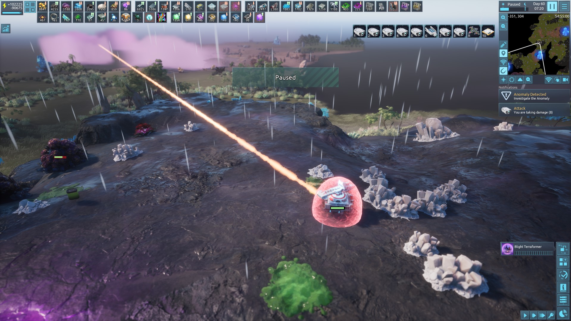 | 4710 | 🙂 | Bug | So, it seems that guns tend to shoot into orbit sometimes while firing at enemies at a higher elevation, like I also explained on discord (Hello, it is I, Dran). Just look at that shot piercing the plateau before heading into space. | 2024-09-13 00:24:27 | |