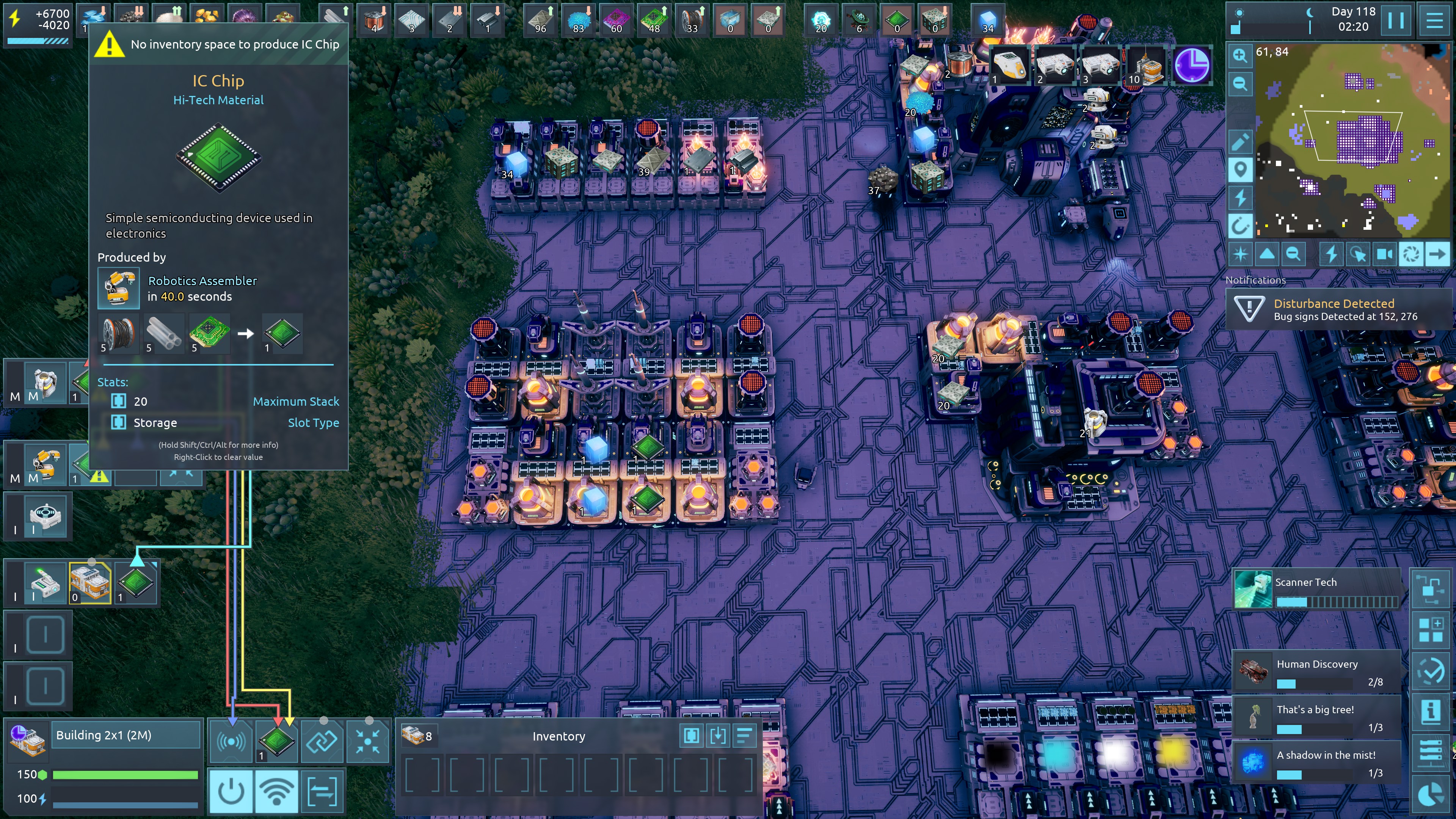 | 4391 | 🙂 | General | Page 26 - Parameter Registers on the tutorial does a good job on the basics of production, but in accidentally dropping the fabricator in the wrong slot I realize something that I hadn't put my finger on before. It's great that you can drop an item into a production slot and start production (there's lots of Quality of Life features in this game). But the icon/frame for a slotted item and the icon/frame for the register of what's being produced are almost the same, except for the corner and the letter in front of the icon and the relative position. When I dropped the fabricator into the Robot Factory register (the top register on the building) instead of the top M socket , it felt like I was slotting the item. I've played the game enough to think know this was wrong, but it also isn't obviously a mistake when I'm not paying attention, and I know this was a bit of a learning curve originally. It might be a good idea to have a much more obviously different frame between sockets and registers. Decrease the register icon size slightly while increasing the border size and adding some shape and color around the entire border. This way a register and a socket will feel diffferent. (Also, this feedback window has a problem with scrollbars appearing and disappearing sometimes when it is on the border between needing a scrollbar and not when the new line of text is past the length of the vertical scrollbar because it momemtarily decides to have a horizontal scrollbar. If it's a canned text widget you are using here, you might try to turn the vertical scrollbar to always on. | 2024-06-17 13:35:27 | |