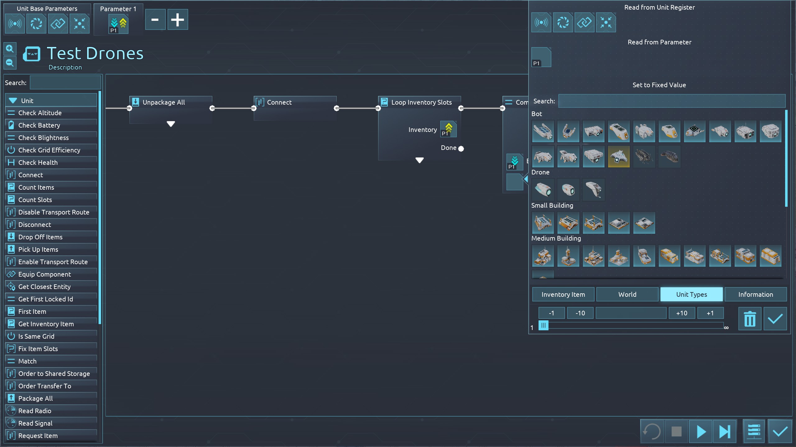 | 3660 | 😟 | Bug | Advanced Miner Drone is not on the list of Unit Types when using the "Compare Entity" instruction. Please add them to this list once you've unlocked them. Not having them on the list makes checking for unpackaged miners harder because I need to package them to count them, which is clunky too because sometimes they just drop to the floor instead of the inventory when unpackaging, even when not full. | 2023-12-15 00:12:13 | |