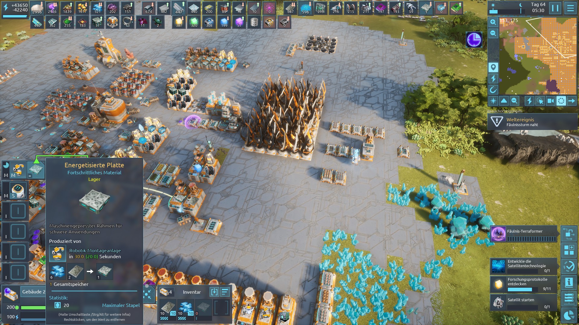 | 3683 | 😟 | Suggestion | I have protected my base with 90 Medium Turrets and 162 Repair Compontents. I ought to replace those with Photon Cannons and AOE Repair, but that would require too much work with the mouse. Also I would need 16x16 storage yards just to hold the old items. A new special building that could be instructed to replace all instances of one unit with another and destroy/deconstruct the old items would be much appreaciated. | 2023-12-18 23:27:44 | |