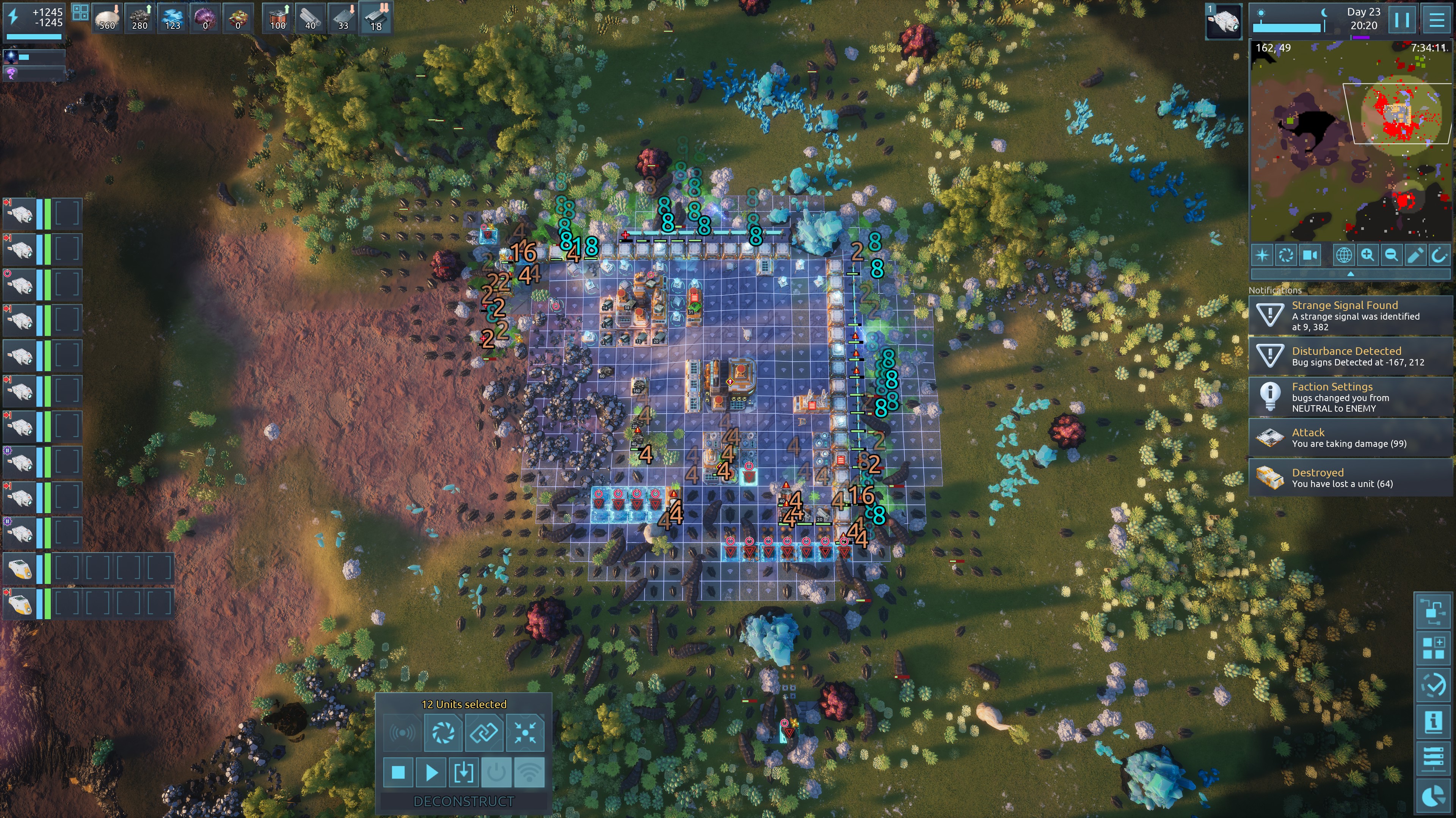 | 5650 | 😟 | Suggestion | Well, I put the hostility setting to aggressive and this happend xD Way to many hives spawned. I would have to CONSTANTLY destroy hives. However even bugs way outside of visibility range (mine or that of bugs) would just magically find and attack me. I have to say I put the bugs on passive for a while thinking I could prepare and then destroy the hives in visibility range first. That didn't work out too well... Suggestion: Limit aggro range of bugs to radar range (even tho bugs don't have raders) so even if the bugs are set to aggressiv they will not find you from wherever they are on the map. | 2025-10-14 07:42:39 | |