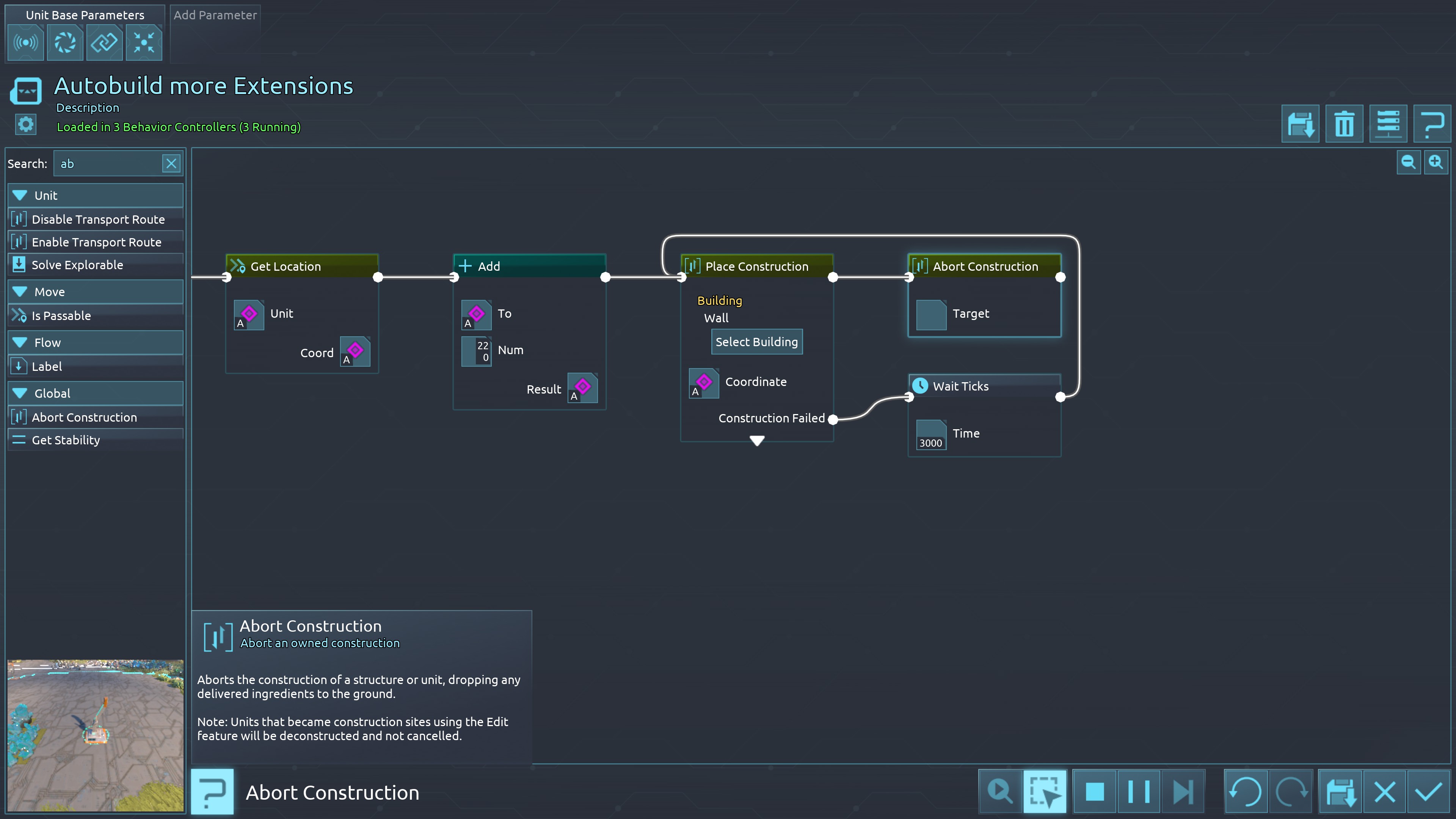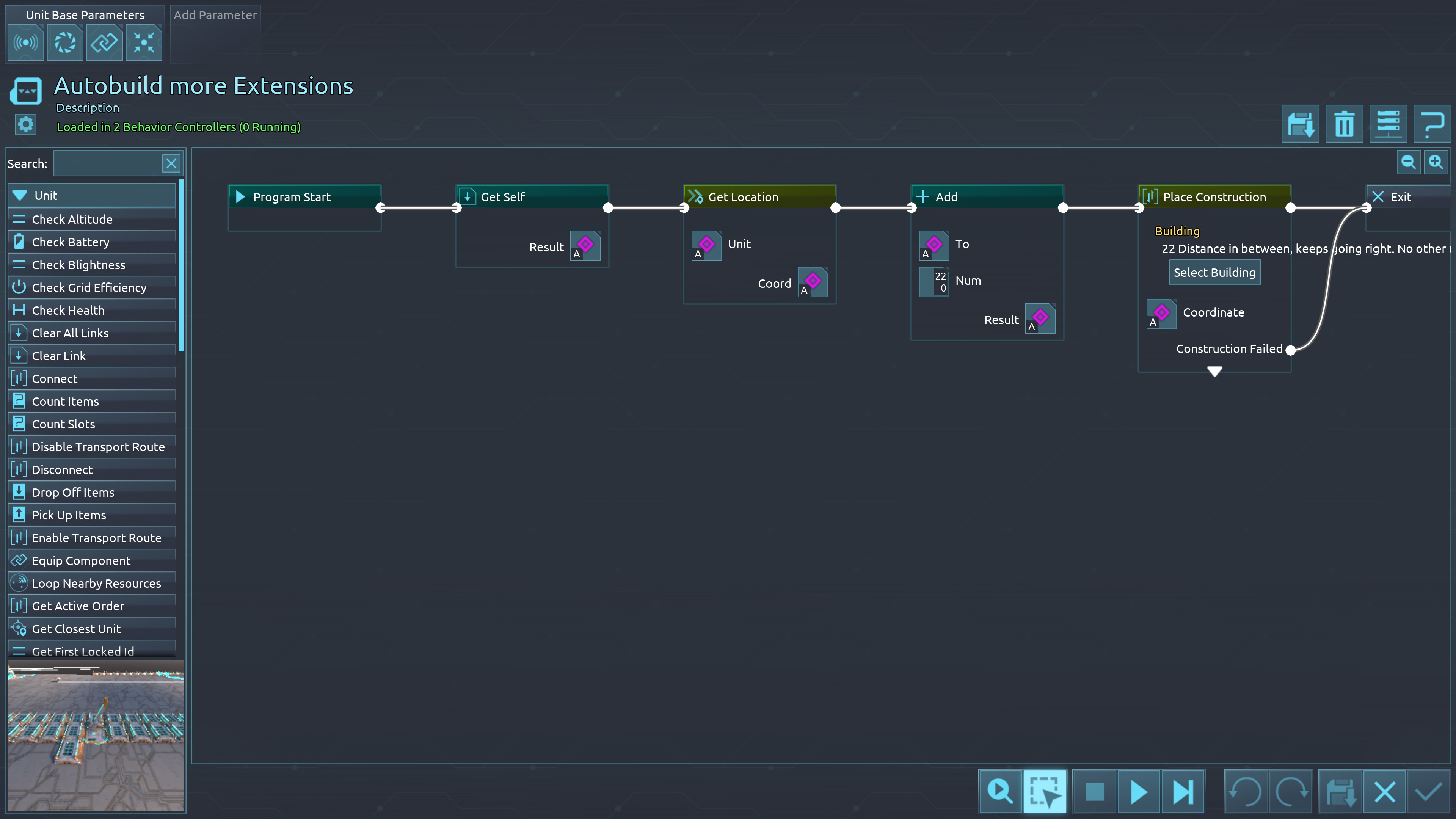 | 5675 | 🙂 | General | abort construction.... what kind of extremly specific situation is where we need to use this? i start: i test autoconstructing, so, due to NOT knowing where it will show up, i will use this, as in, construct, wait a second so i know where it is, then abord construciton. BTW, can you add deconstruction? because i want to construct thing but, if i don't need them anymore (aka i send a signal or other trigger), for all of them to automatically deconstruct themself. well, for now i will just stick with having a bot run around and deconstruct said enteties, still ok. Speaking of automated construction. can you create a new one that has the following function: place fondation (or whatever tile names they have) on any network covered area. This is a combined effect. This effect will essentially do many many things and the bot will not be able to do anything other thing. It's a full time job. To start with, the title to place and then the area. why? to get rid of needing to loop every last tile. Especially due to issues. also, is it possible to work on layers? the tile construction are covering units above it when, the units should be visible and only when they move the ground to be visible. Anyways, back to this tile thing, another thing that happens, is that this unit will pick up tiles until it's inventory is full to minimise time wasted due to transport. Secondly it build on the spot, no hologram meaning no other unit will pick up tiles because there is no request. This is why i said it will become a full time job because i don't know if you realised, any possibility to do this via program is more time consuming then in 1 - 2 seconds quickly laying a large area... repeat, it's more time consuming to progrem this beheviour due to how many chains needs to be done and avoided, reason why i suggest such a multitask full job beheviour | 2025-11-02 02:10:04 | |
