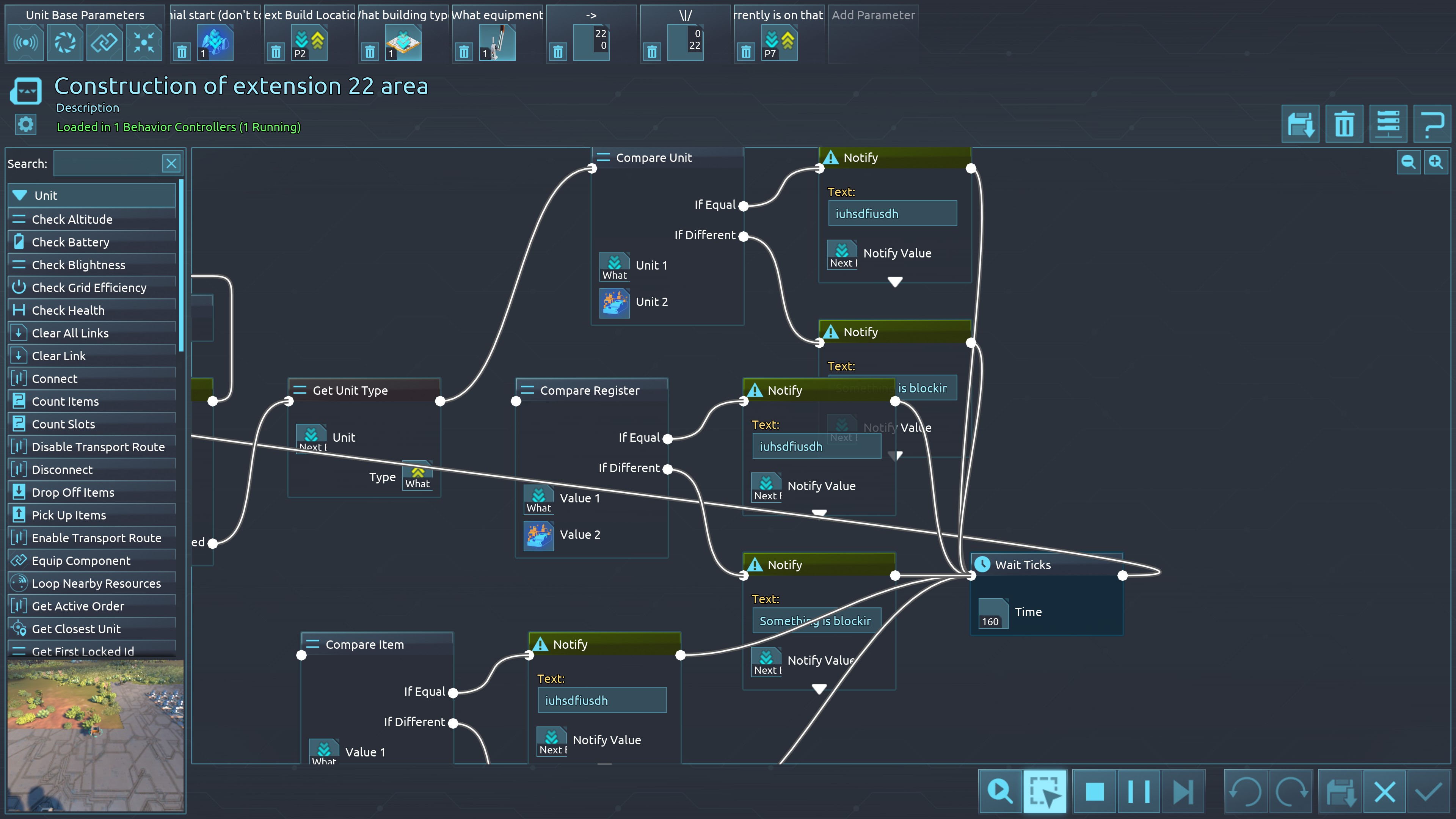 | 5671 | 😟 | General | I want to make the bots check if they have an item in the inventory, and check all of them (since will use this for units with more slots) but i have absolutly no ideea what each on does and what they don't do or how to use them or how to tell what i am doing is correct.... sorry, i have no clue how many other people are willing to bother to learn how to use this ones. Also use of exemples in explanation might be helpfull? i honestly don't know. the ideea is that this programing takes more time and effort then manually having all units deconstructed and reconstructed from 0.... just to get the same result.... this is seriosly not good... i am sorry, i love when i know how to do thing. it's just very very tedious to make things work. Any little misunderstanding and it does not work.... please create an overhaul, not REMOVE, not REPLACe, NO, just redo the presentation so that one of this can do mutiple things. there are to many chains. to many elements. way to much. if we want to fine tune it, ok, but, that should be like a separate tab, exactly how in build we have default and separatly the blueprints. So let me try again: we need to have default comands that do mutiple things in one single thing, no chain. And, if we click on it, we can open it to actually see all the chains and ajust them. Aka the presentations. PLUUUUSSSS by default we only have access to this simplified, muti function actions beheviours that are a massive QoL that no other game can offer. But if we equip the I beheviour equipment, well, now we can open this and see and modify further. Aka all the completx elements. Like get componet, the combined default will have check if has, if not request, if has then equip, so on, but, what we see, is just a little box saying what equiptment we want for the unit or building to equip. and if we use the I, we can change this ones, like add chains. And here comes the thing why i said about default and blueprints. The defaults are default, but, if we changed the default beheviours via the I equipment, we can save them and use them just like how blueprints work. Aka exactly what we have now, we can just load a beheviour, even if it's a combined. No chains, no setting everythng, just a simple parameter and everything else will be set | 2025-11-01 23:29:17 | |