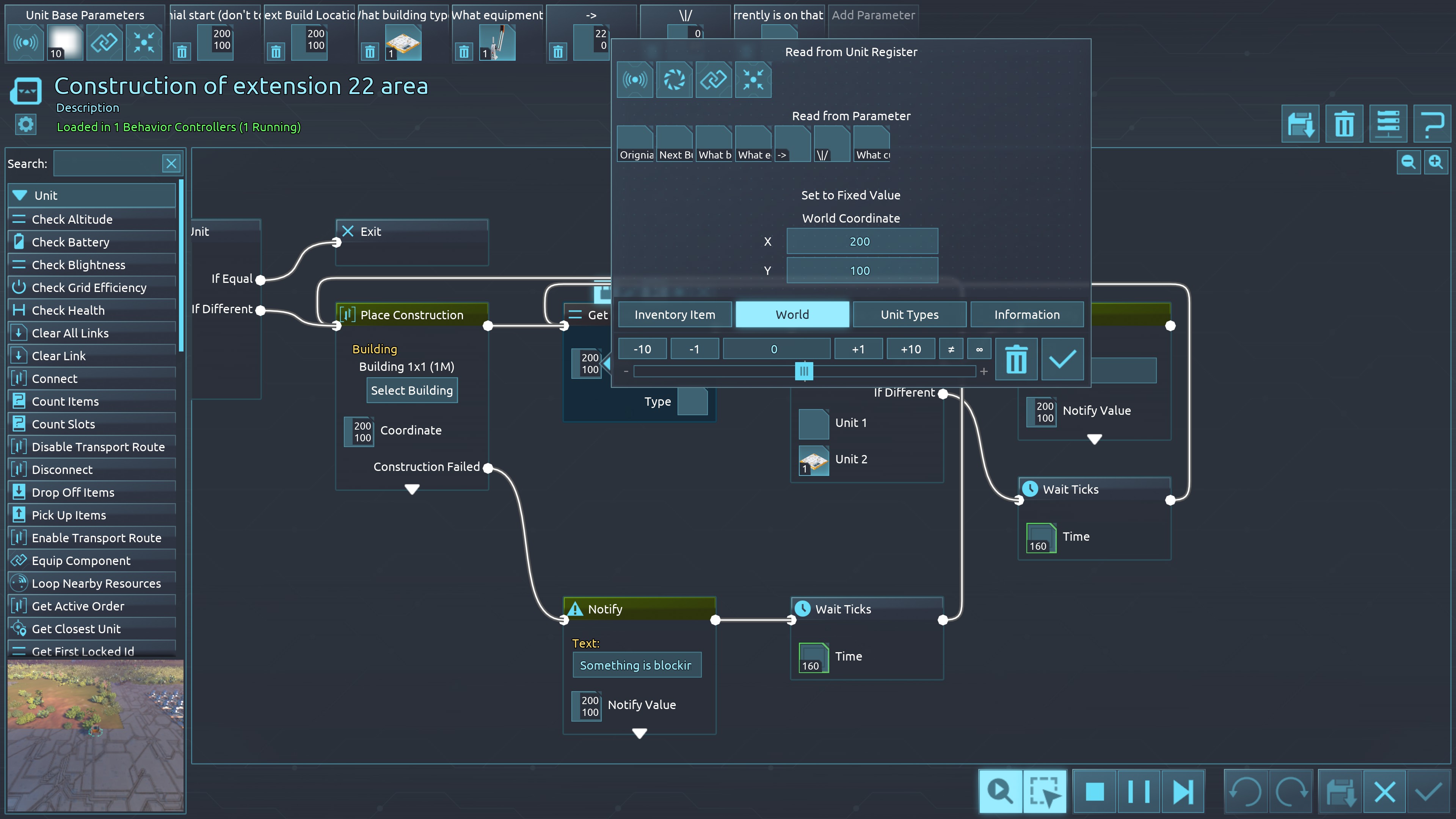 | 5687 | 😟 | Suggestion | I wanted to see the unit but you know, forget what i wanted: why is this not 1 single thing???? The network one is the best exemple: you have a button: what to show: battery, frame, type, unit (including if it's land, like water, cliff, rock, mineral, whatever it is), energy, really, you know, get unit INFO! Including inventory and equipment. Why is every last one a separate thing when you could create a single long (deep) box where everything is every nicely located. Ah yes, i forgot, coordanance, and so much more. To make it a bit more clear: get info -> any info that can be registered into a parameter. So health, battery value, location, all of this (if they are enabeled) can have their own little box for result (aka where we put parameters), and be one under each one. The ones that should not be in this massive box: is moving? because depending on the condition (yes, no, blocked, so on) different actions are made. So the get info, is really just that, getting the information + setting this info into parameters) but nothing more aka just 1, and just 1 single bot to connect to the next one.... ok ok, look, i am writting while iritated, so of course this 1 single might not be ok if there is a "can't get info (no clue why) or similar. ideea is to not complicate the things while still combining stuff | 2025-11-02 19:28:51 | |