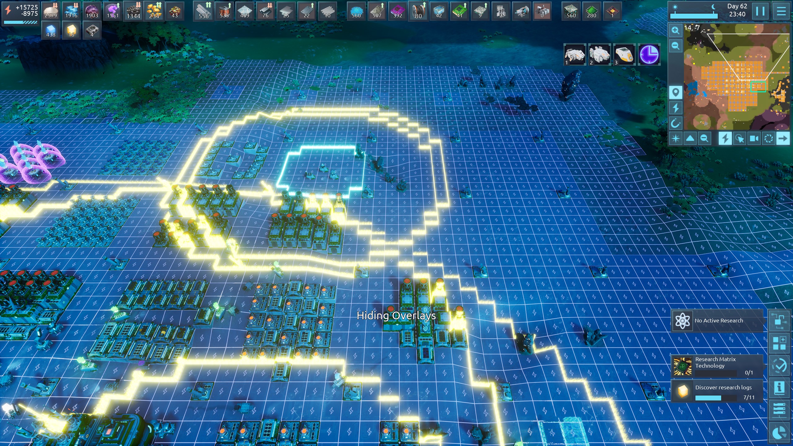| 3044 | 🙂 | General | Having setup a block with uplinks more aimed at blight research I power off all buildings when I do other research. But the powered off uplinks are still tasked with some other other research, which they should not be as they are powered off. Pausing the research and doing continue will schedule the remaining parts on the right buildings. | 2023-10-29 13:07:16 | |