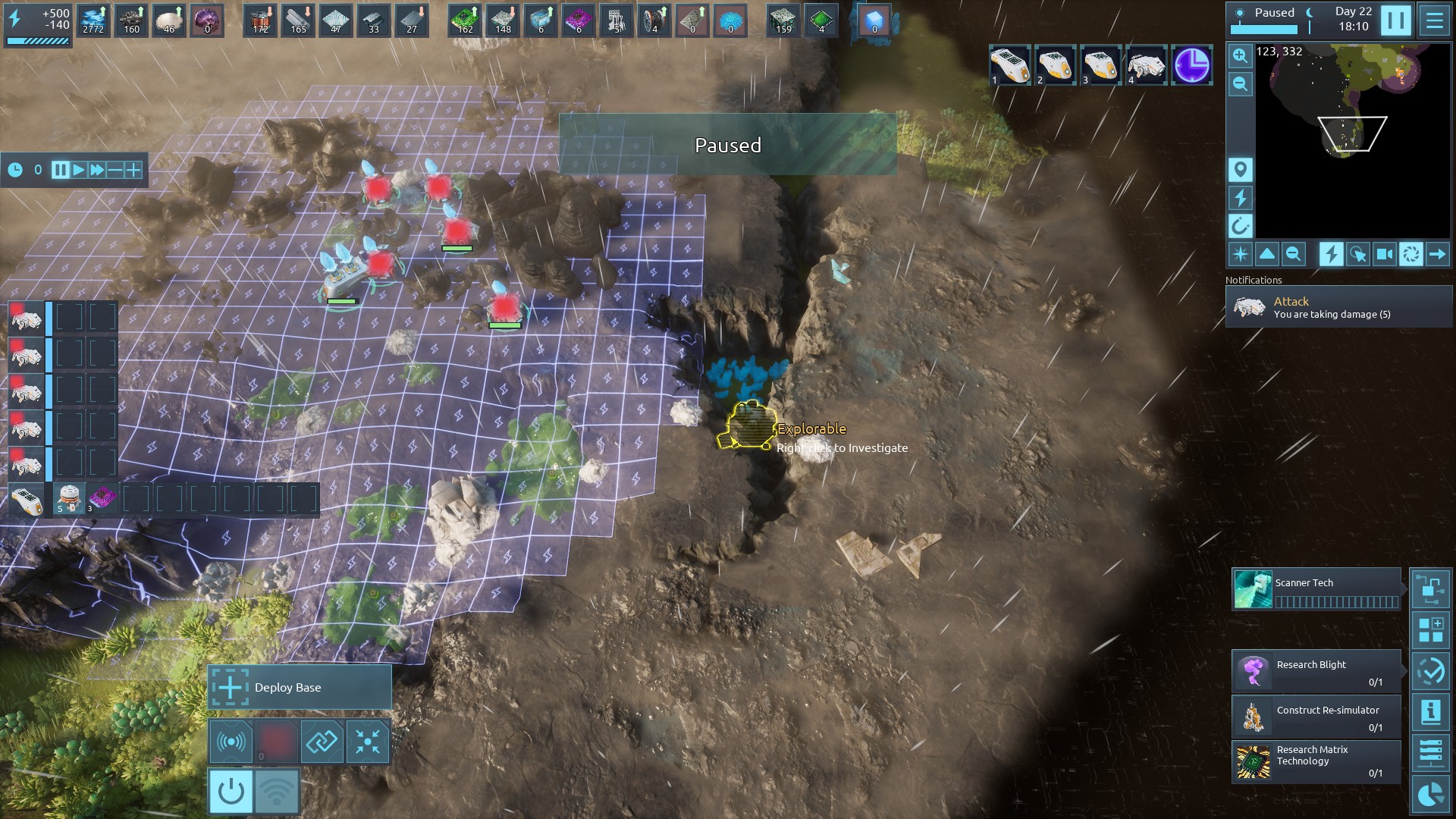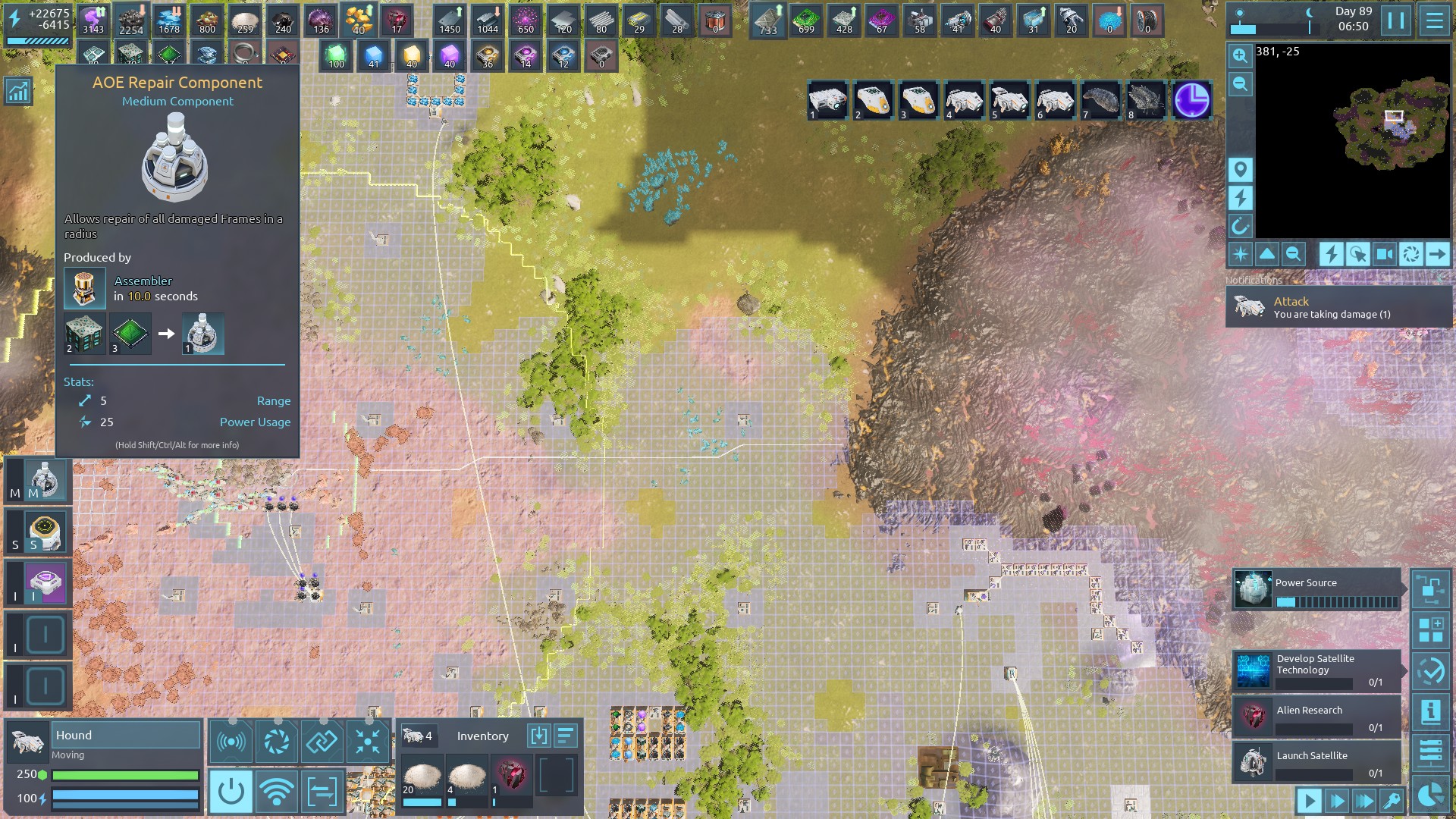 | 2733 | 🙂 | General | Balance issues in current experimental version (Oct 7, 2023) 1. AOE repair is a bit overpowered. Might cost more energy when activited. 2. Game is quite difficult on normal/low resource, especially on blight crystal shortage. Cay be better with increased magnifier range, or increased resource spawned far to map origin (like factorio resource overhaul mod). | 2023-10-06 23:11:13 | |