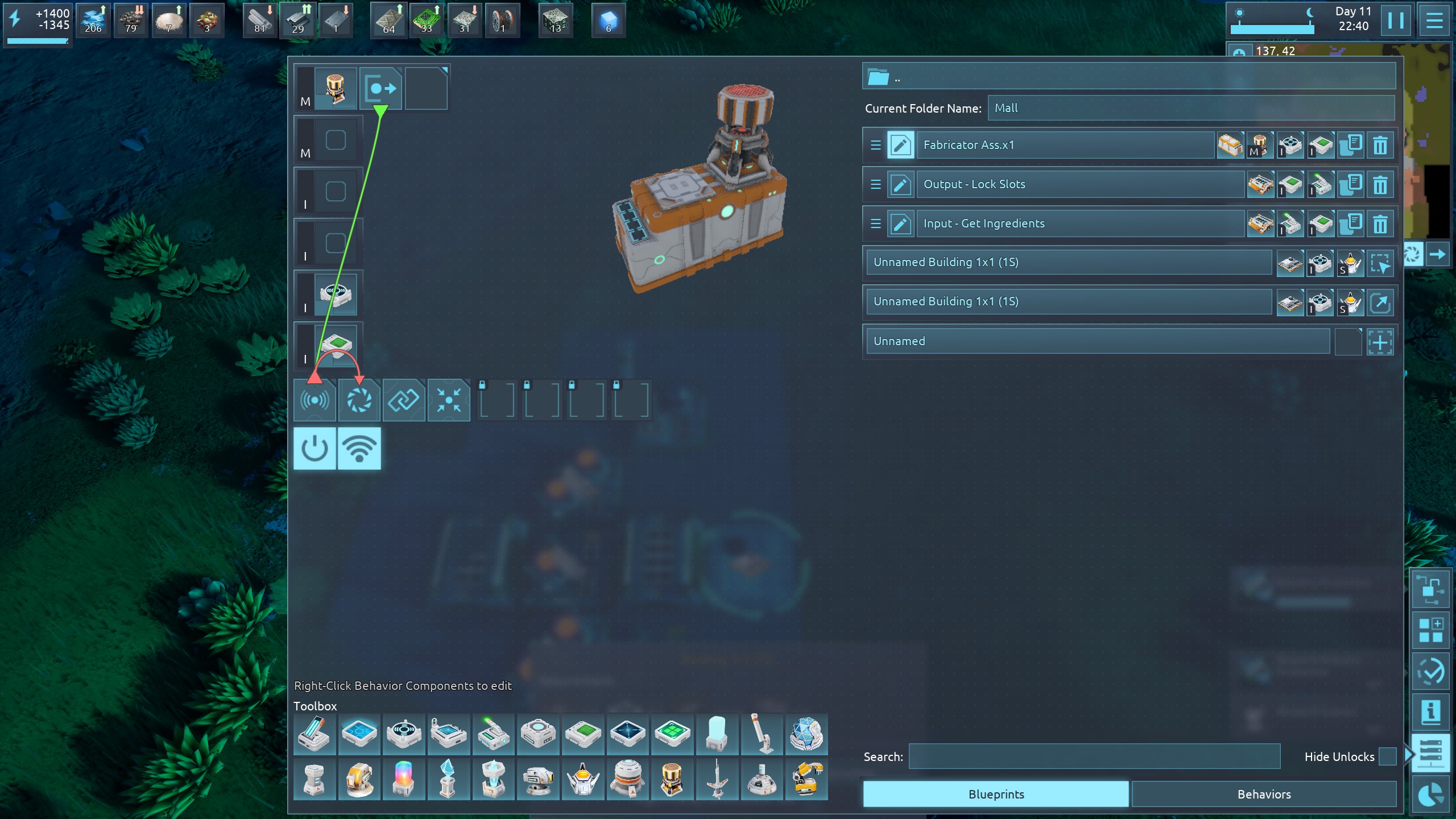 | 2532 | 🙂 | Suggestion | Hello, I think it would be a great feature if when you copy a blueprint to the clipboard, you could paste it to an existing building of the same kind to give the existing building all of the BP's properties (locked slots, behavious etc.) In the current case if you build a vanilla building and have a blueprint later, you have to deconstruct the building in place and build it from scratch from the build menu blueprints. Either that, or if you go from the build menu you could place the ghost over the existing building of the same type to do the same thing. Thanks for this super fun game!!!!! | 2023-09-21 00:43:48 | |