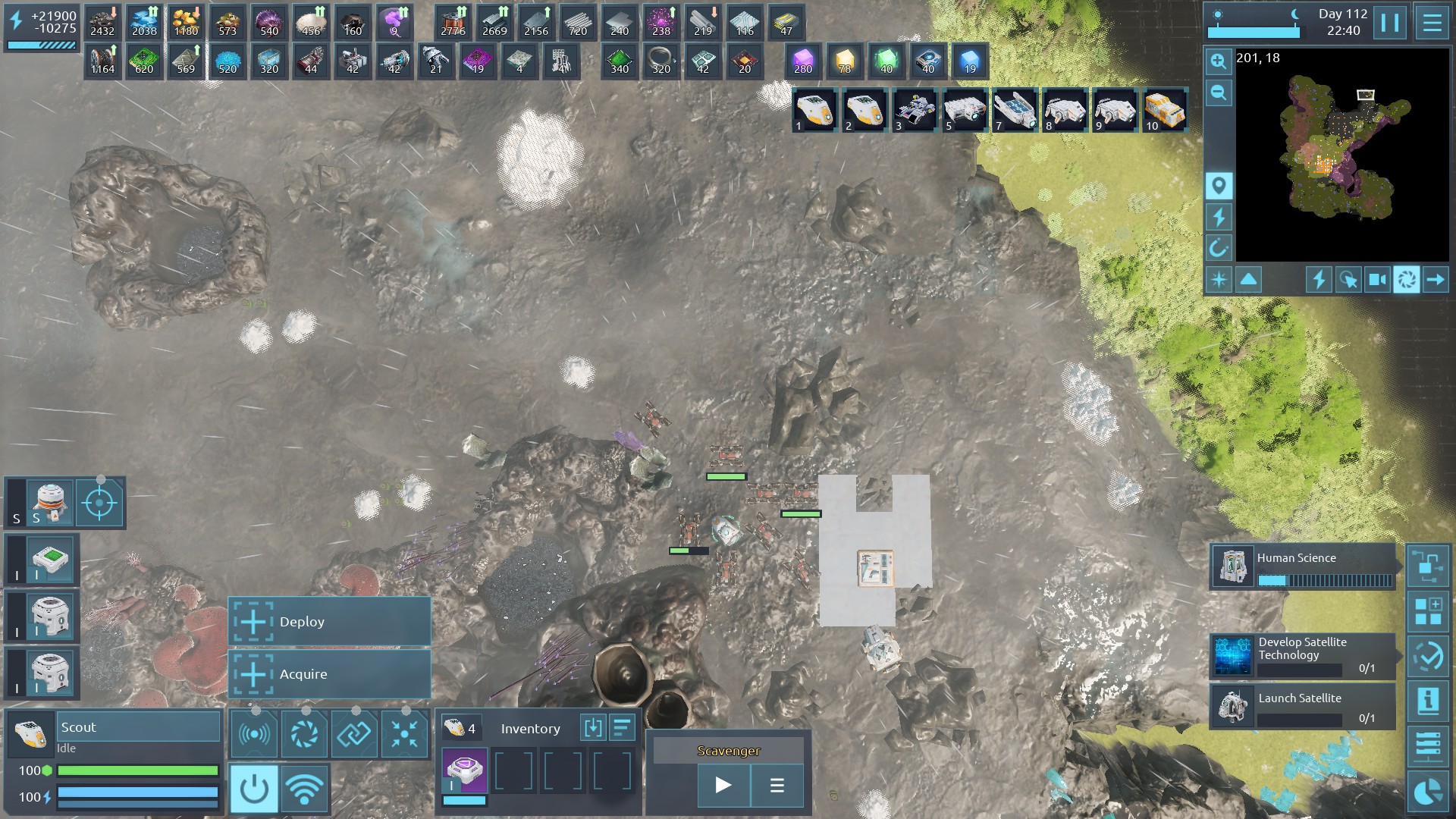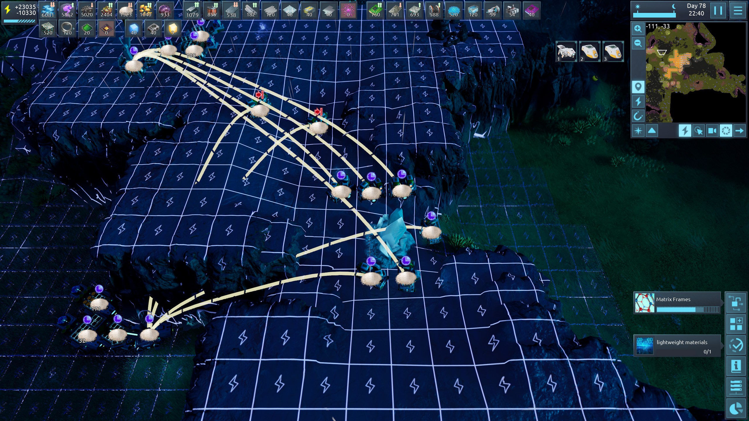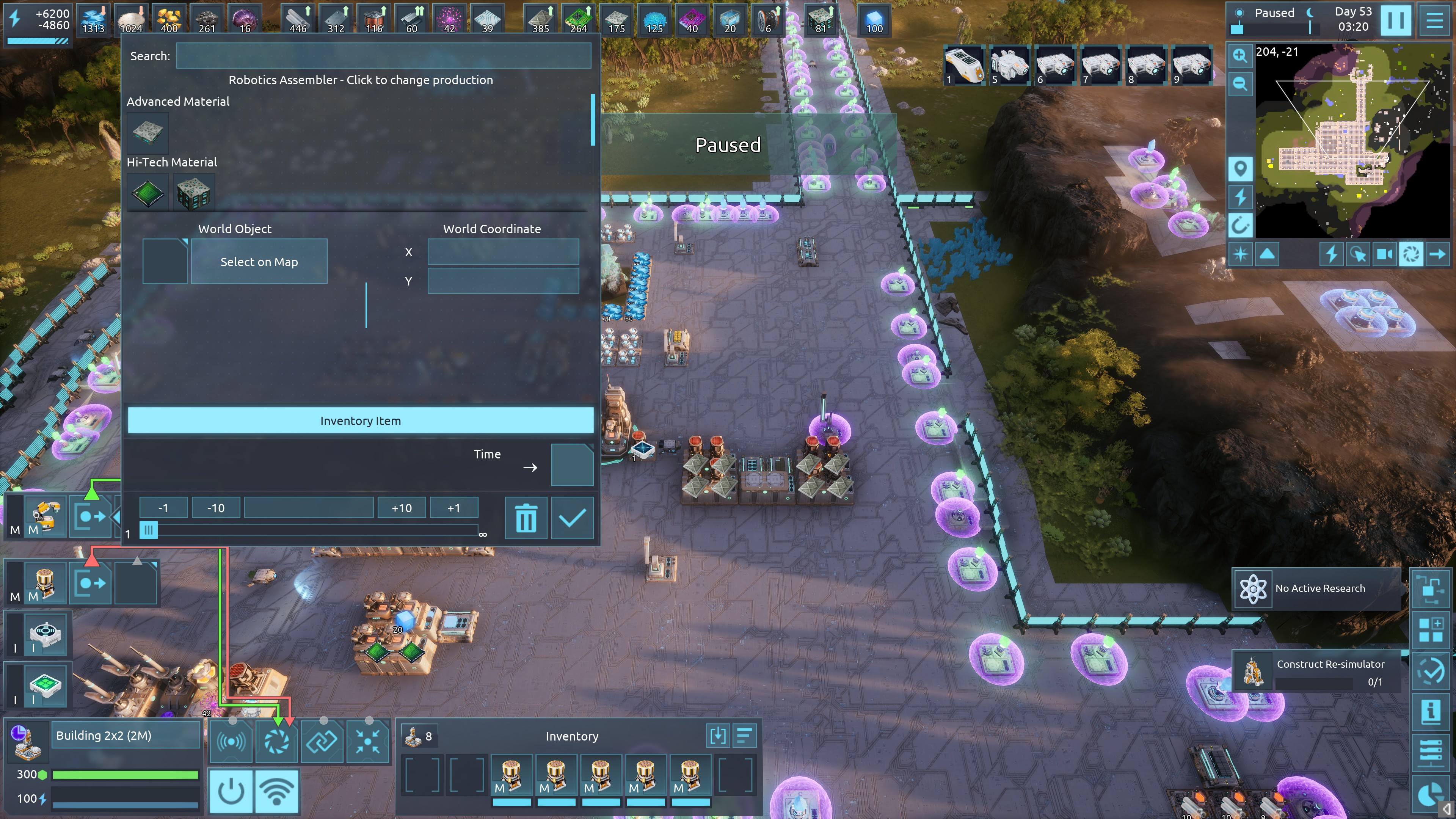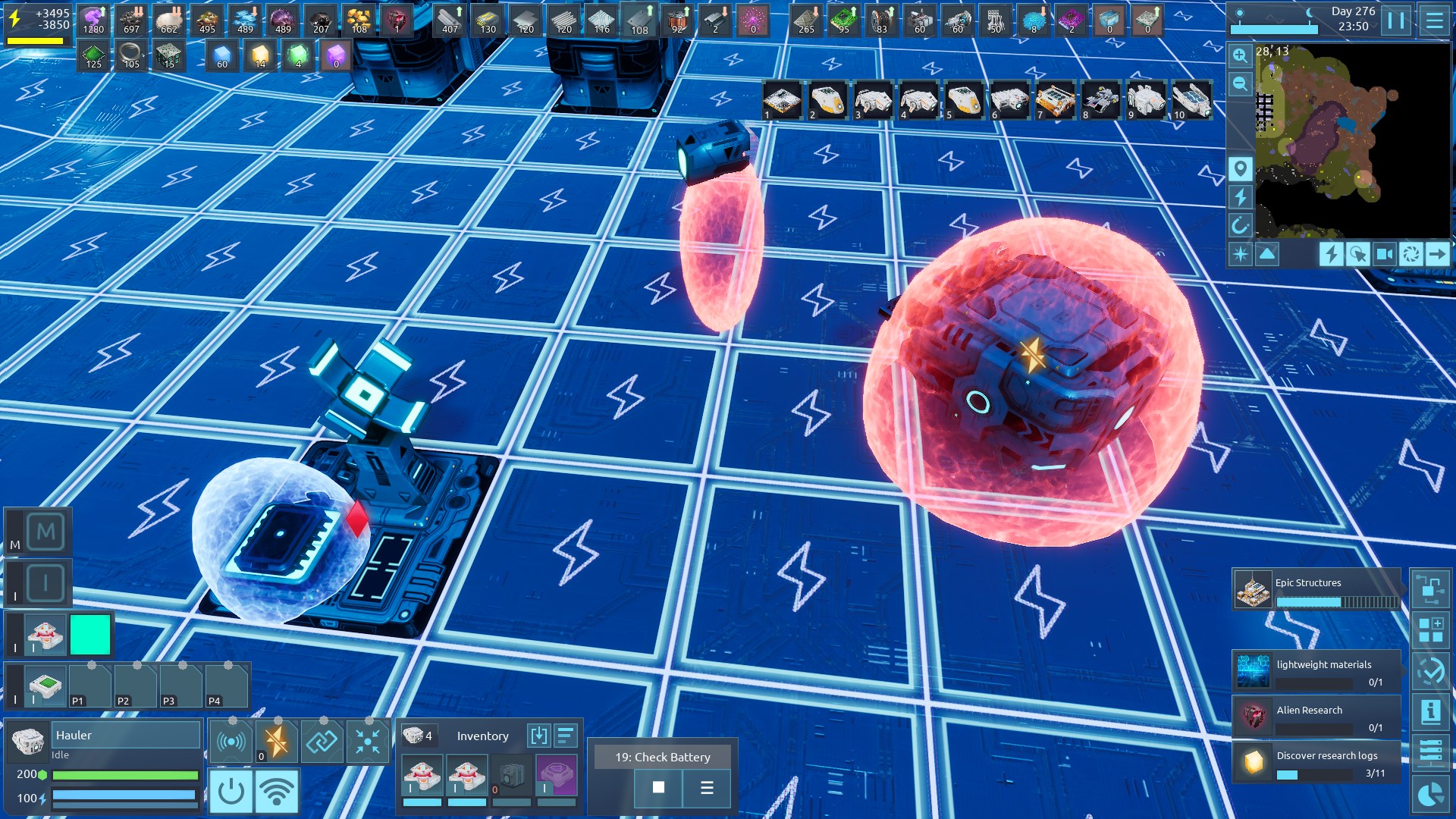 | 2365 | 😟 | Bug | My transport bots can't seem to reliably figure out routing to get though or around this patch of blight. They are supposed to be picking up crystals from the mining team to the east; however, they initially route themselves directly through the blight, then stop at the edge and get hung up until they run out of energy. If I select them and keep refreshing their go-to target (by right-clicking on the same target), eventually they can be convinced to find a path; however, left unattended, I keep finding them hung up and doing nothing. | 2023-09-13 16:41:30 | |