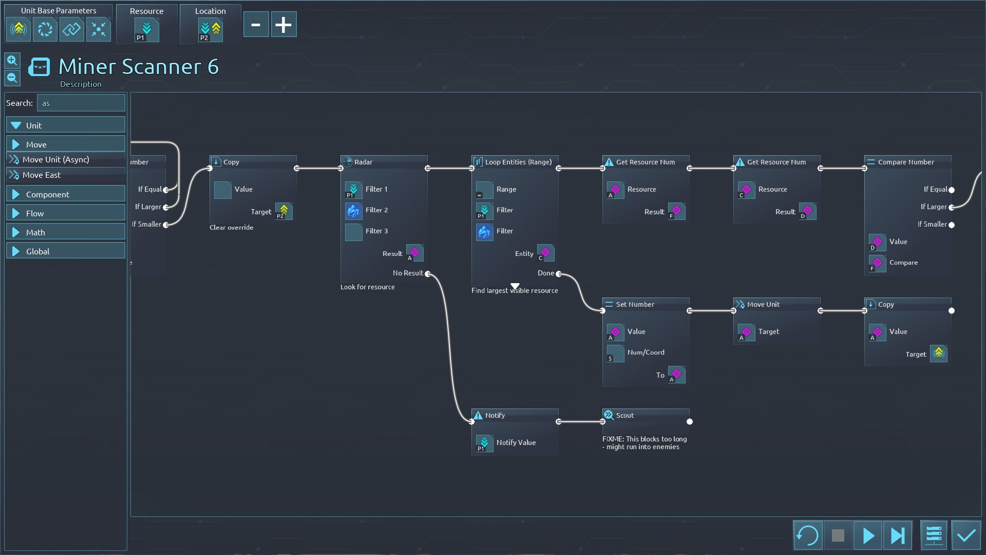 | 2350 | 🙂 | Suggestion | Programming is not very user friendly. I dont understand the different types in the parameters (item-type, number, coord) and how this mix works. Since i am developer myself i dont enjoy figure out this programming style (more visual feedback/debug info) | 2023-09-12 20:48:52 | |
