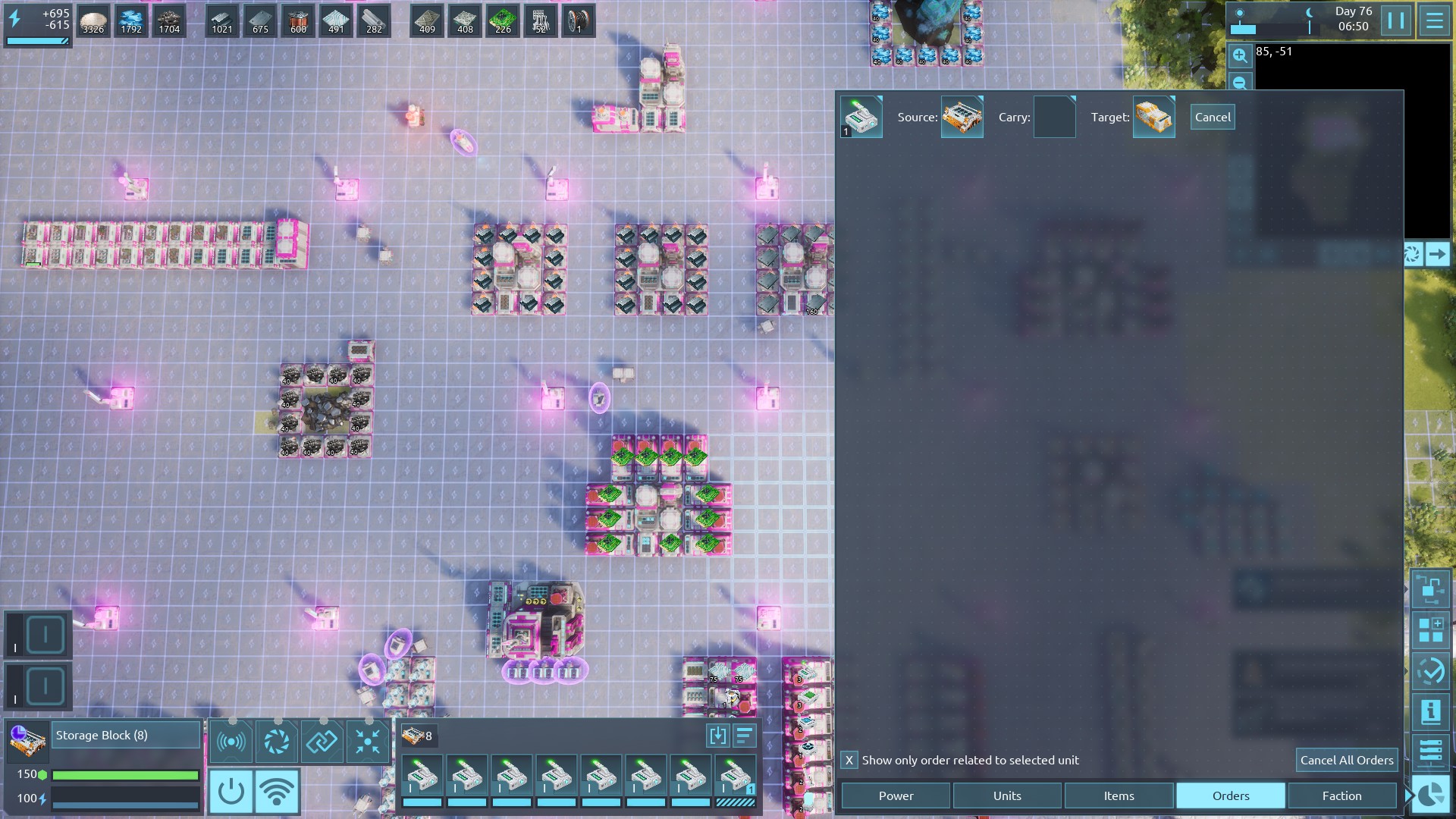| 2004 | 😟 | General | Moving drones around is much more difficult than it needs to be. Please allow us to place drone packages directly into drone ports without having to go into building inventory first. Along similar lines, trying to move a mining drone from one building to another is near impossible when it refuses to dock despite being disconnected from the network and having no mining target. I had to spend 3+ minutes playing can I pause the game at the exact split second the drone docks to finally get it moved. | 2023-09-03 00:04:16 | |