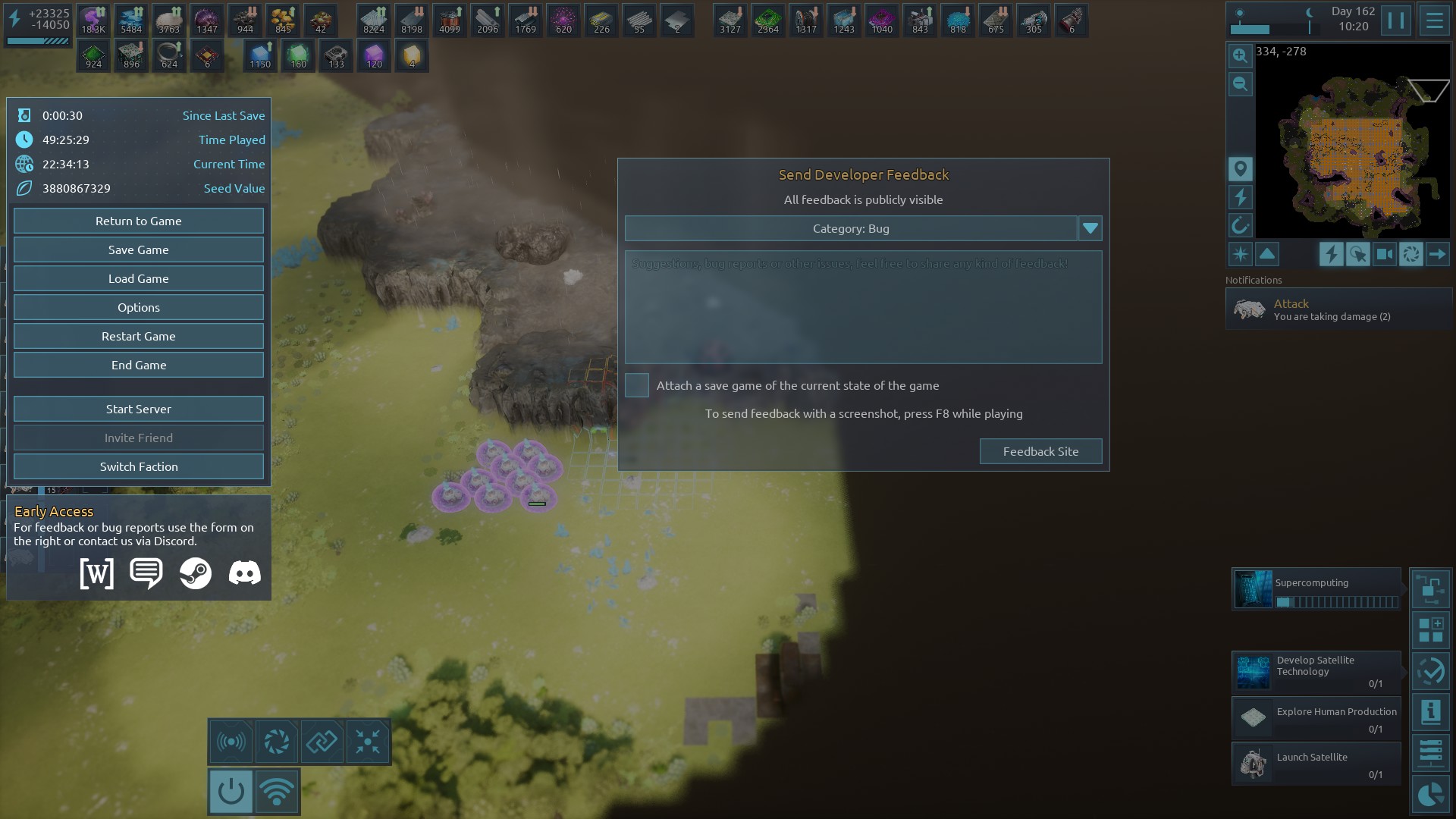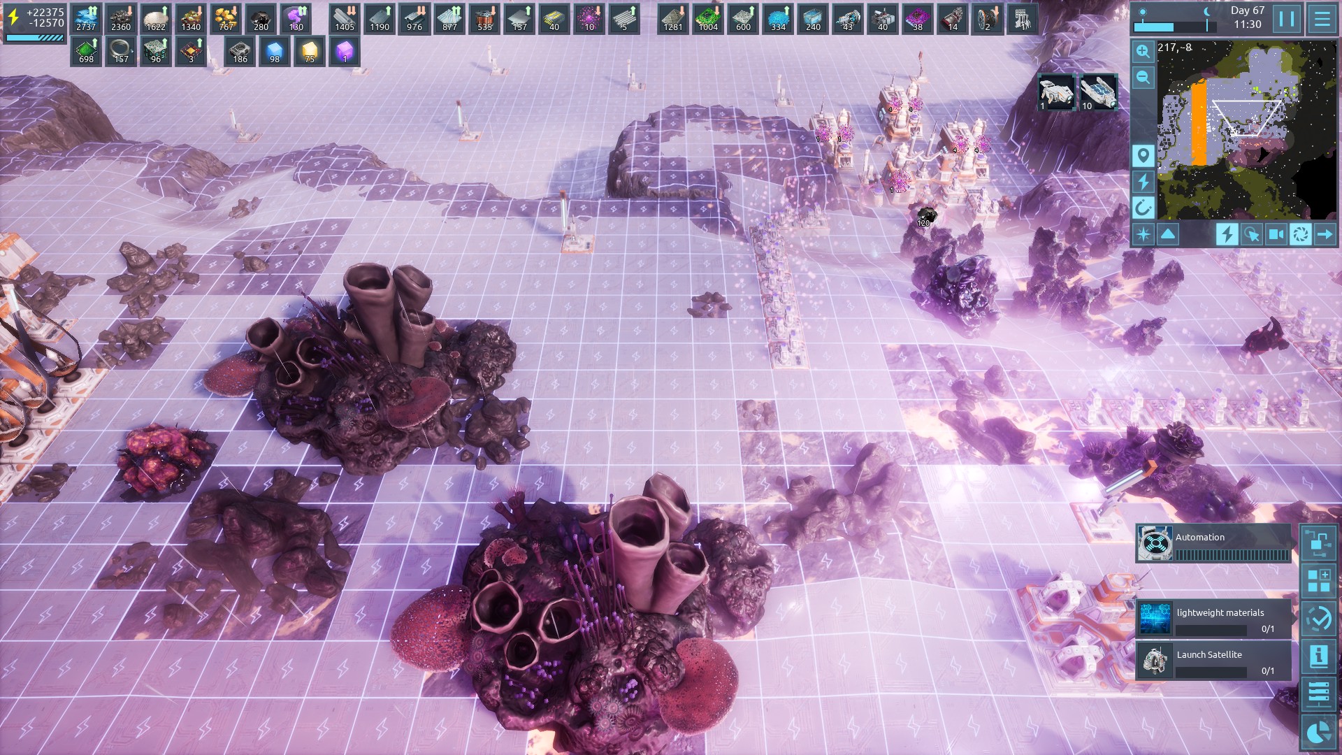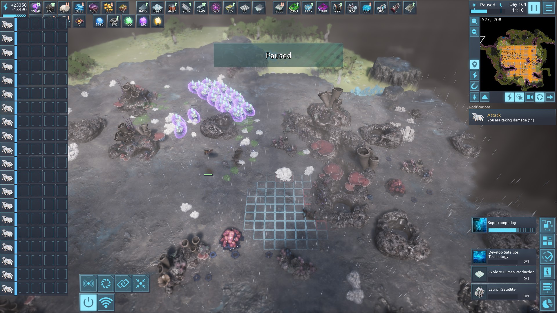 | 2024 | 🙂 | General | The new infinite resources from the large nodes are quite nice in the early to mid game, but at some point they start getting in the way of expanding the factory. Requireing you to instead build around them. The same goes for regular resource patches at this point, requiring you to disable the mining of the infinite patches in order to clear the regular ones at the edges of your factory. I would like to see a component that you can use to completely remove an ore node (without mining it). Attatched is a save game displaying both issues, with one of the laterite nodes being so close to the storage factory grid cell that it would cause inefficient pathing to place all the miners, a power pole getting placed in the crystal miner setup, and requiring me to turn off the infinite metal miners to clear a patch on the left, already using two big storage facilities as a buffer. | 2023-09-03 17:20:32 | |
