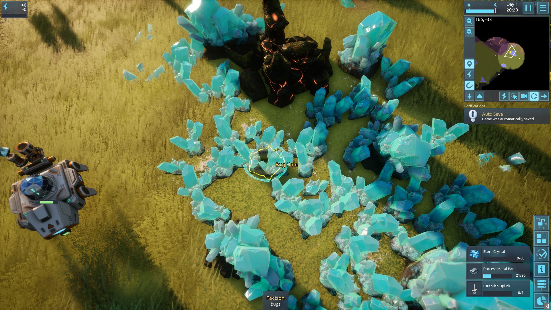 | 1862 | 🙂 | Bug | Spawning bugholes sometimes places them in odd places such as this cliff corner. I've also seen one underneath a crystal resource. | 2023-08-31 03:54:49 | |