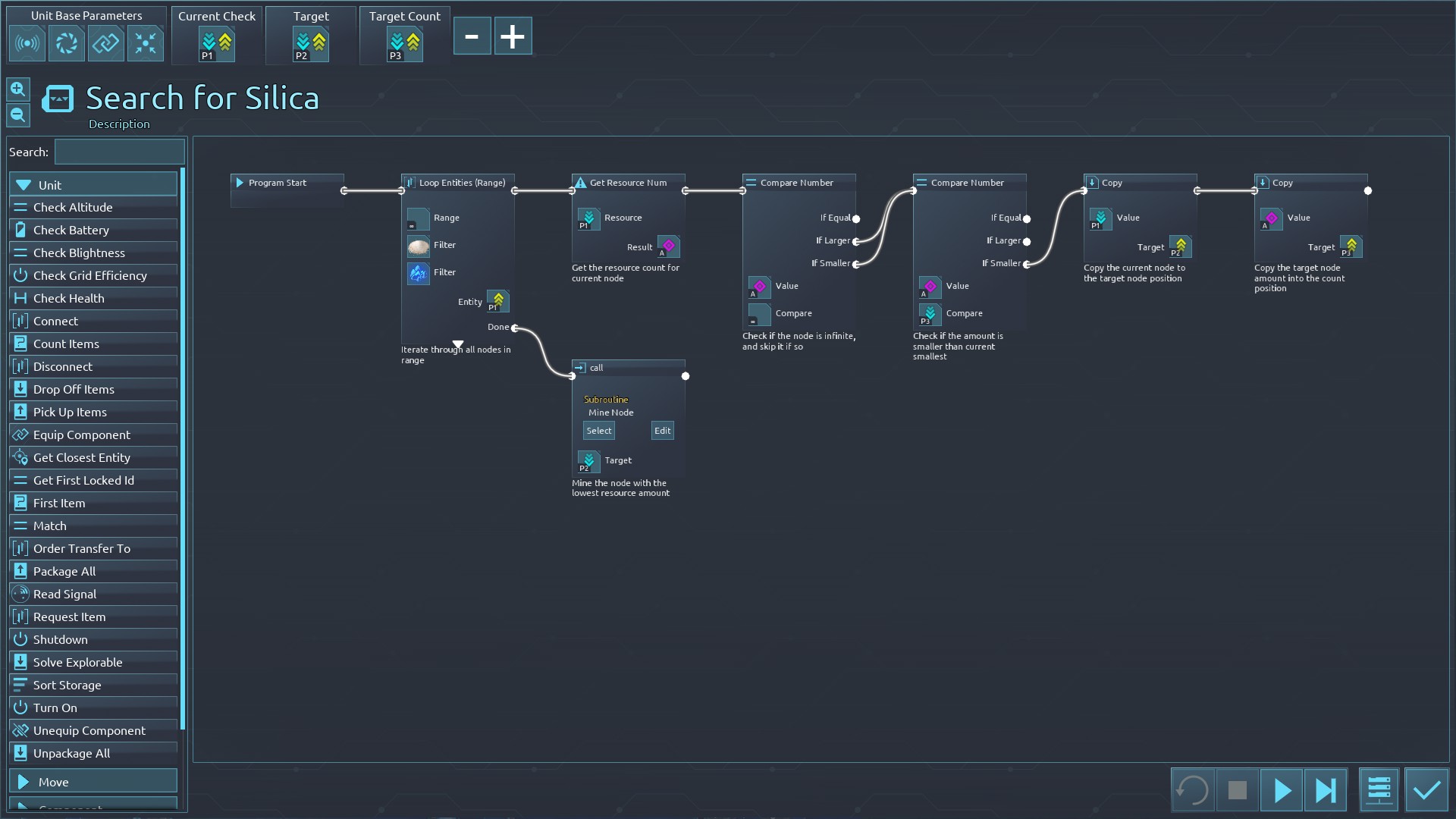 | 1857 | 😟 | Suggestion | A Filter option for "Empty Space" that returns a coordinate. Empty space being anywhere without Foundations/Buildings/Resource nodes. I'm trying to make an auto-flooring bot and this lack of option for radar/filter is about the only thing stopping me. Thanks for an otherwise excellent programming system though. | 2023-08-31 02:04:10 | |